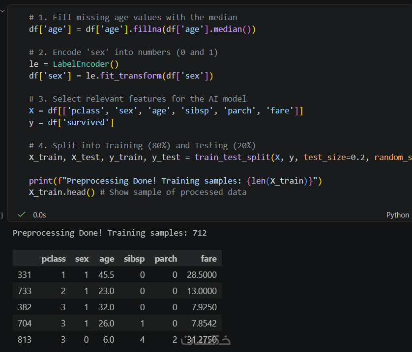 تقسيم البيانات: فصل البيانات الى Traning , Testing لضمان دقة النموذج