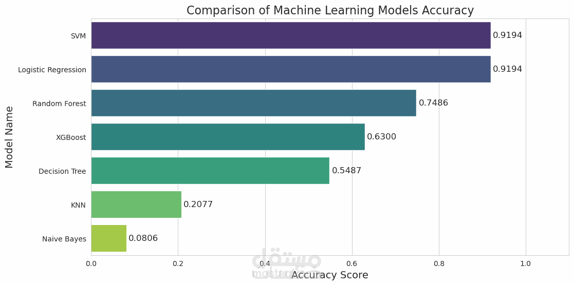ملخص يوضح مقاييس دقة النموذج (مثل Accuracy أو R2 Score) مع شرح مبسط للنتائج المستخرجة