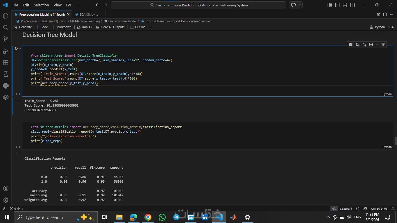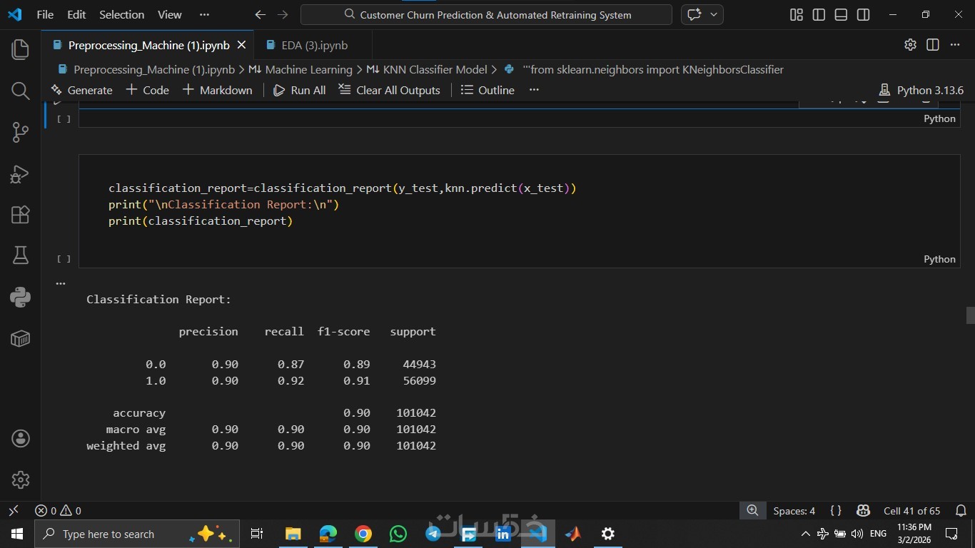 تقرير يوضح دقة النموذج (Accuracy) والنتائج التي حققها على بيانات الاختبار، ليطمئن قلبك لكفاءة العمل.