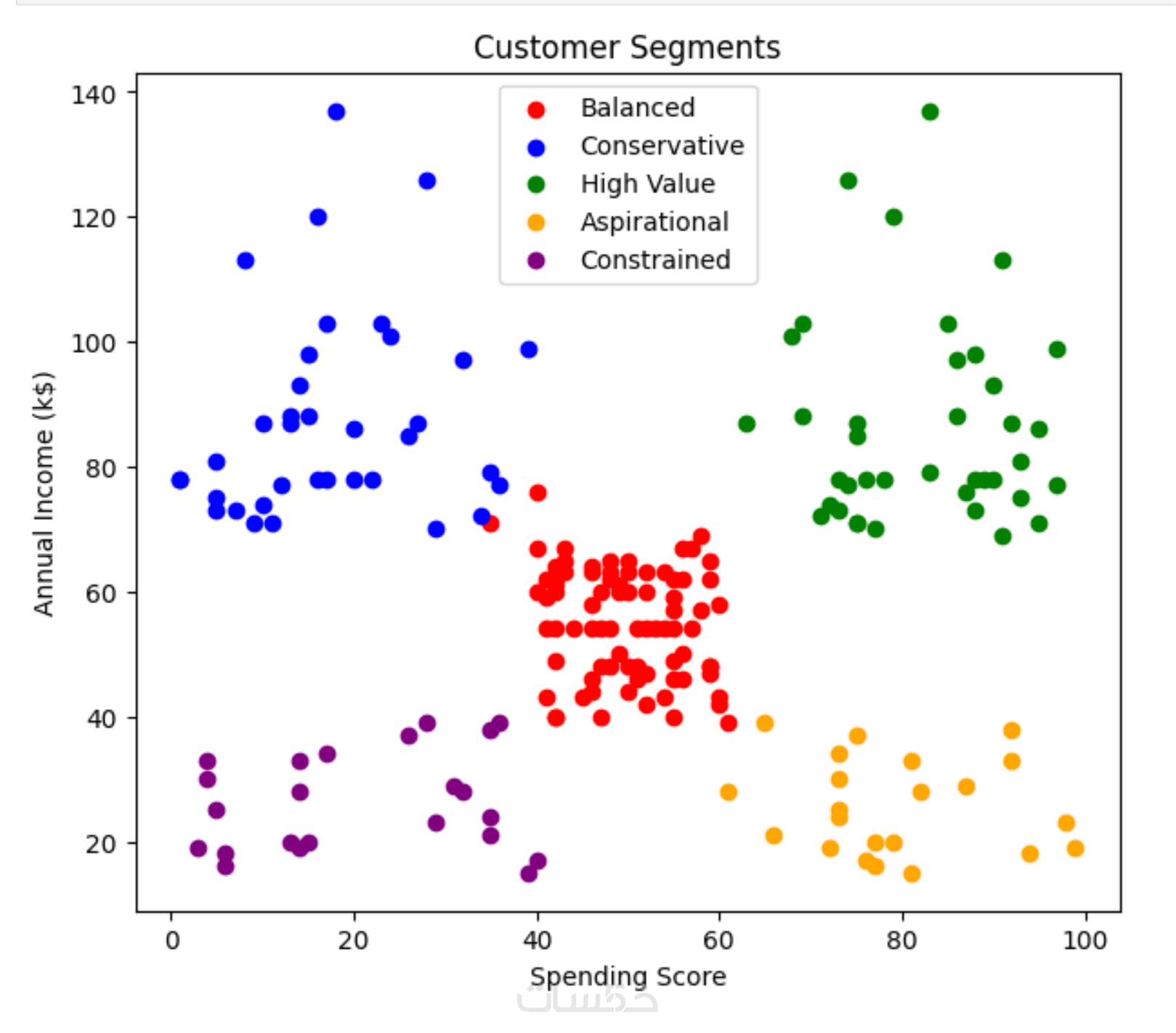 Customer Segmentation: تنفيذ خوارزمية K-Means لتجميع البيانات وإنشاء Scatter Plot ملون يوضح المجموعات (Segments).