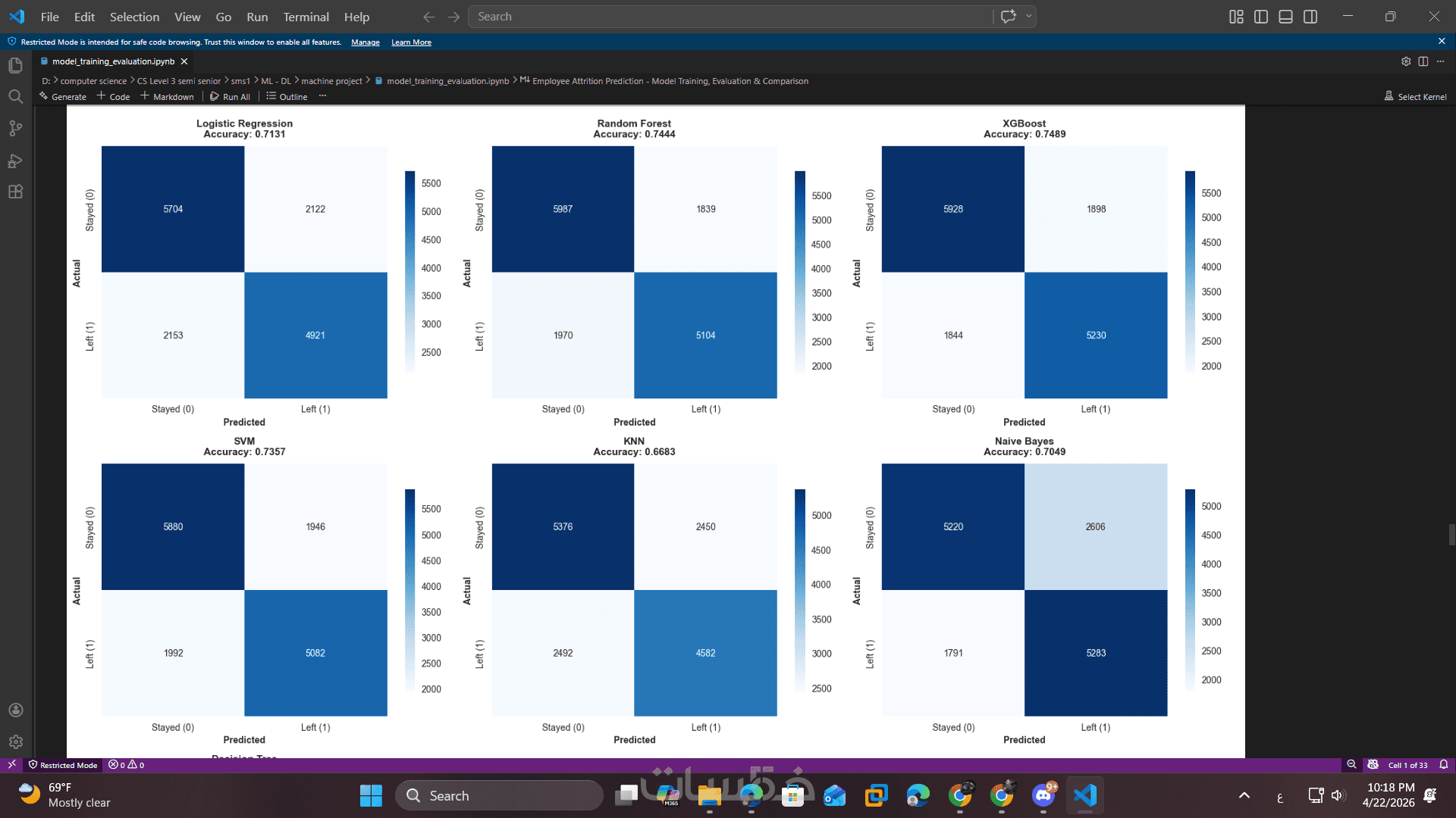 تحليل أداء النموذج باستخدام مجموعة من المقاييس الإحصائية المناسبة (مثل Accuracy وPrecision وRecall وغيرها) لضمان تحقيق أفضل نتائج ممكنة.