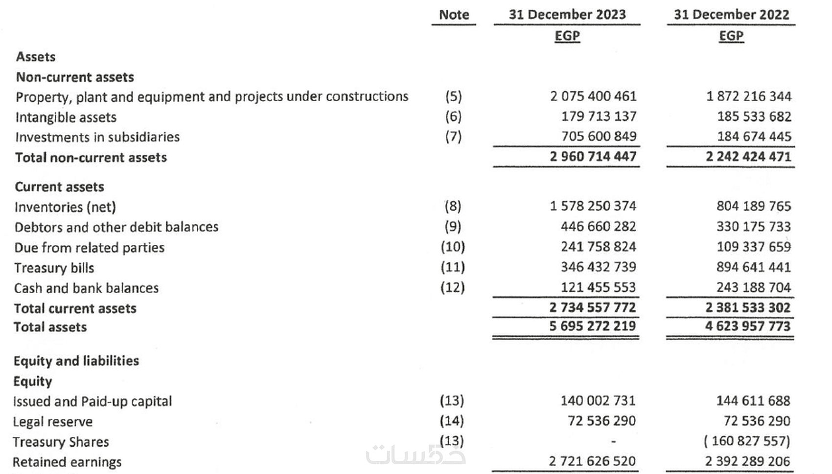 7 - الإيضاحات المتممة للقوائم المالية (وهي جزء لا يتجزأ من القوائم المالية) .