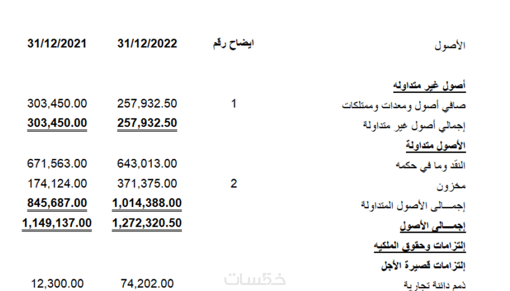 2 - قائمة المركز المالي .