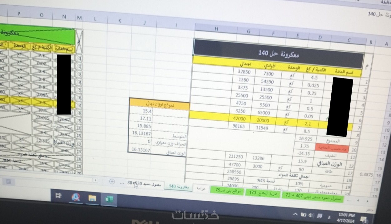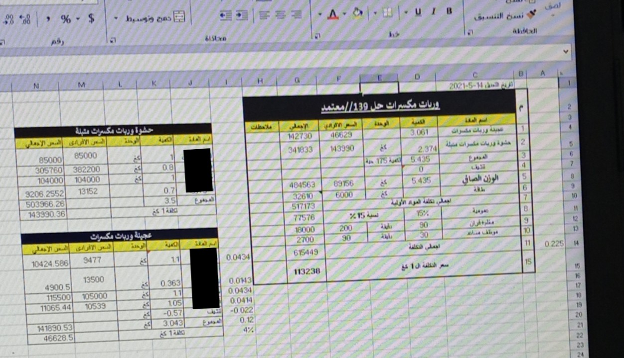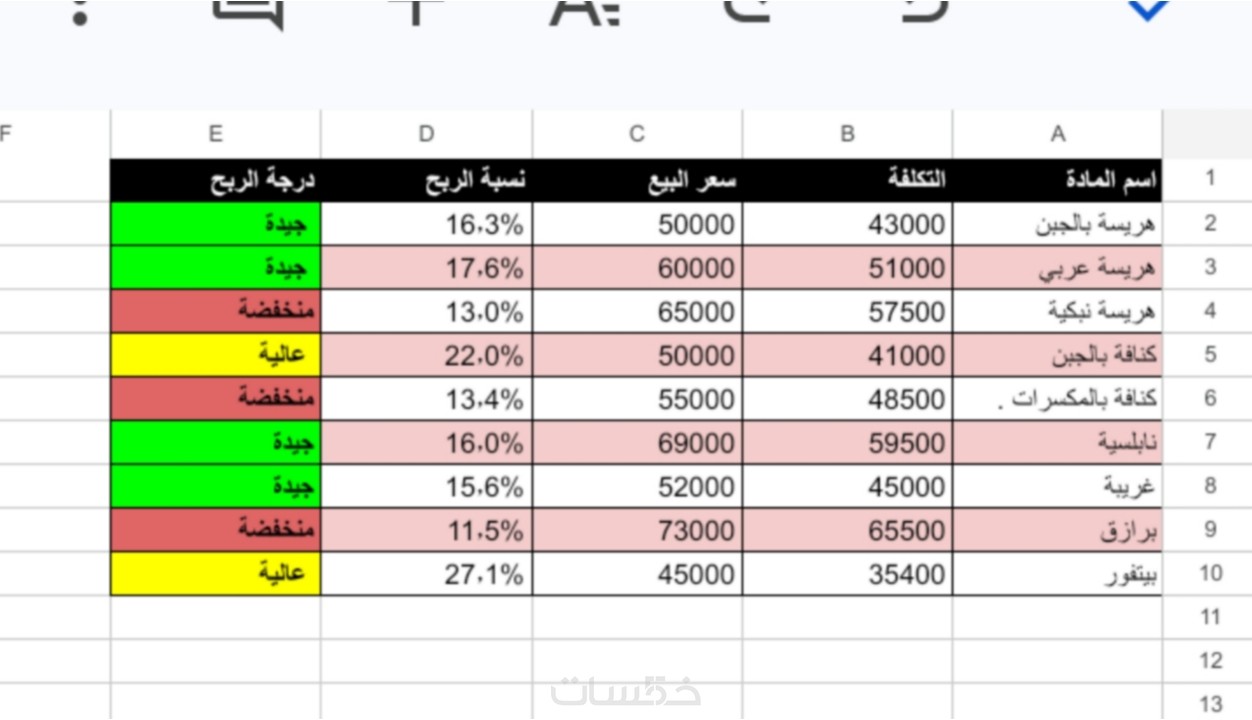 يشمل احتساب التكلفة، هامش الربح، وسعر البيع لكل منتج.