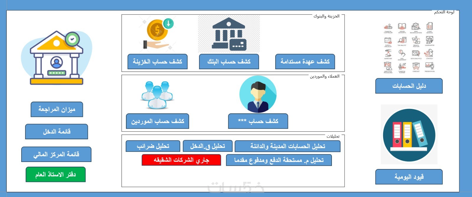 - إعداد قيود يومية لكل عملية مالية مرتبطة بالحسابات.