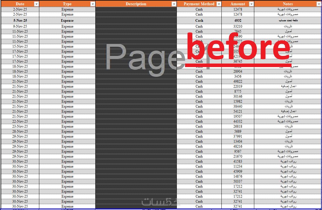 6- تنظيم جميع البيانات بطريقة واضحة وسهلة القراءة بملف اكسل ل 50 حركه او لمده اسبوع ايهما اكثر