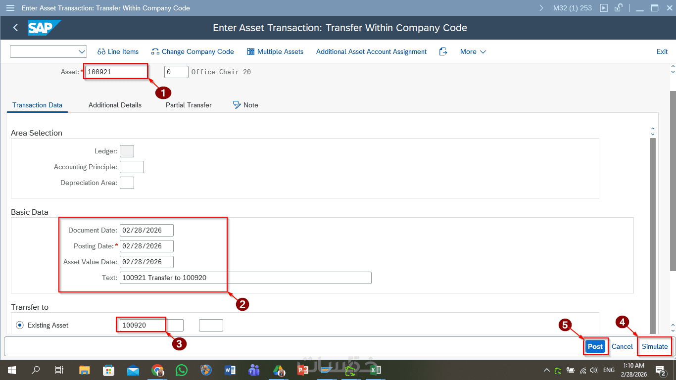 تنفيذ العملية المطلوبة على نظام SAP