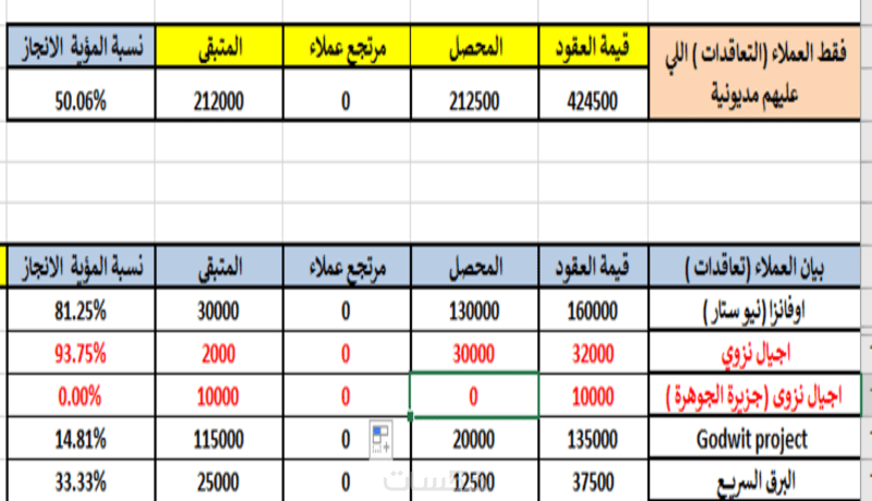 تسليم ملف منظم على Microsoft Excel