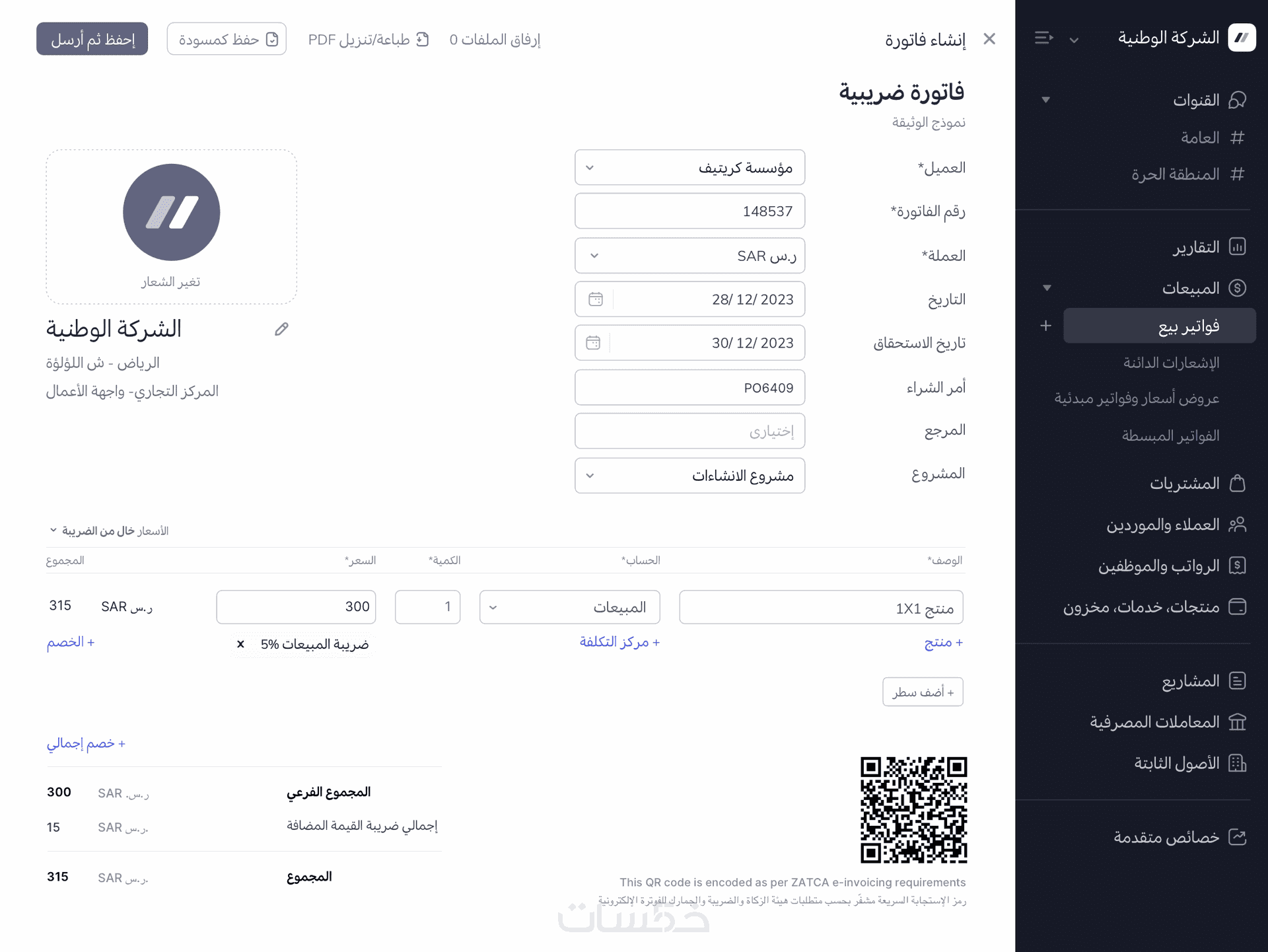 • إدخال الفواتير والمصروفات والإيرادات