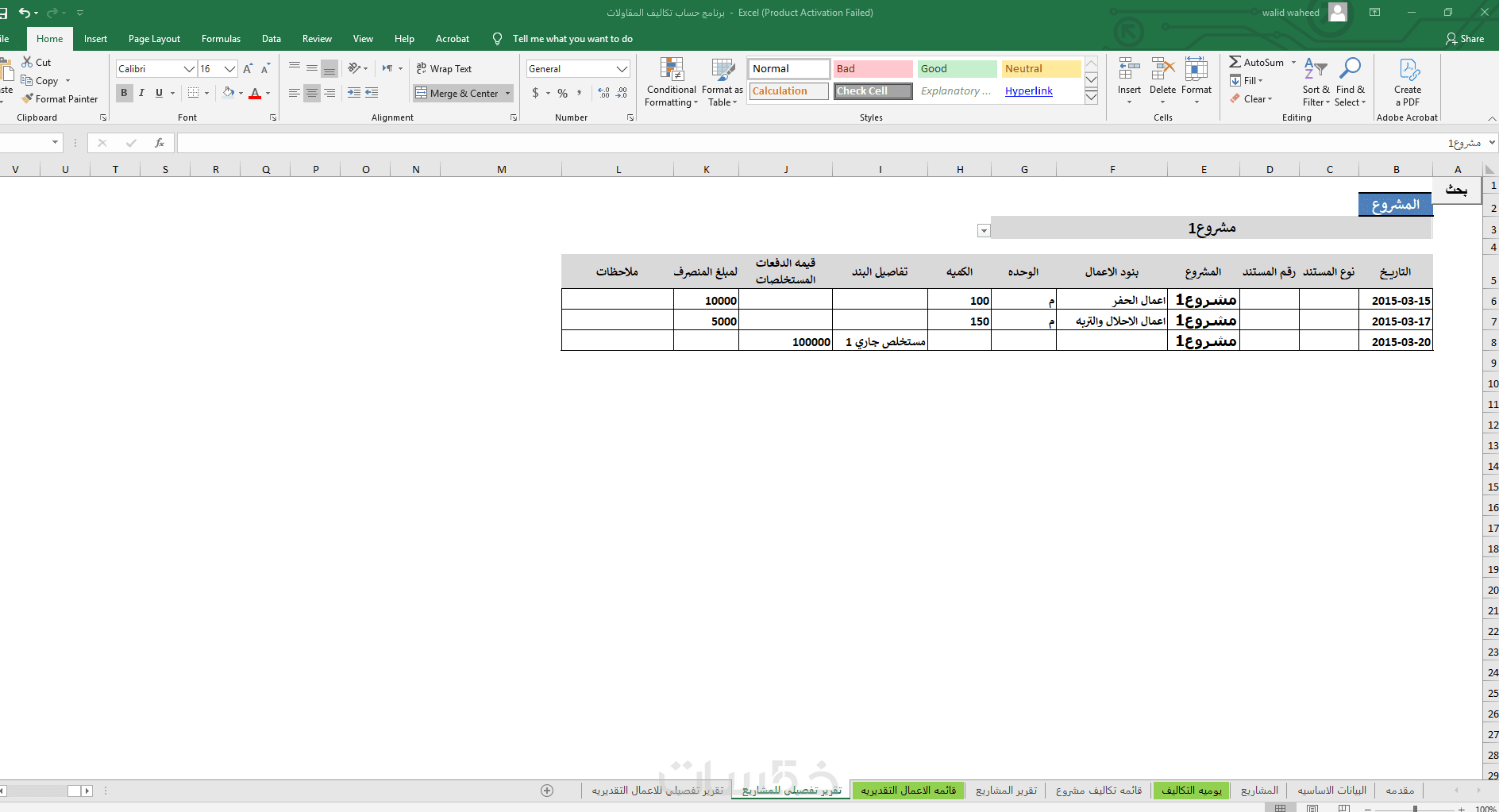 اعداد تقرير التكلفة بشكل شهرى على شيت الاكسل
