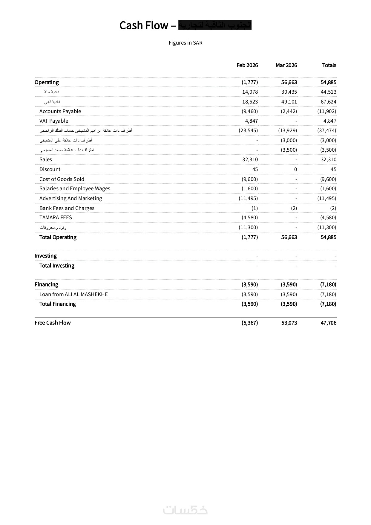 - إعداد التقارير المالية: تسليم ميزان المراجعة، قائمة الدخل، وتقرير التدفق النقدي بنهاية العمل.