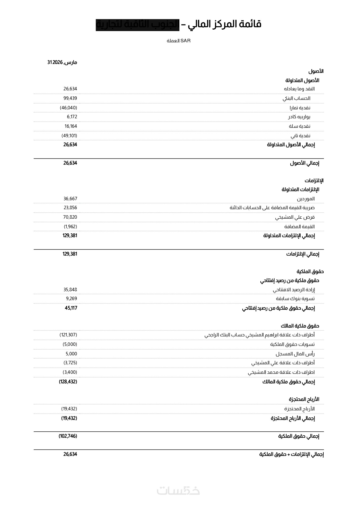 ميزان المراجعة (Trial Balance): للتأكد من توازن كافة الحسابات.
