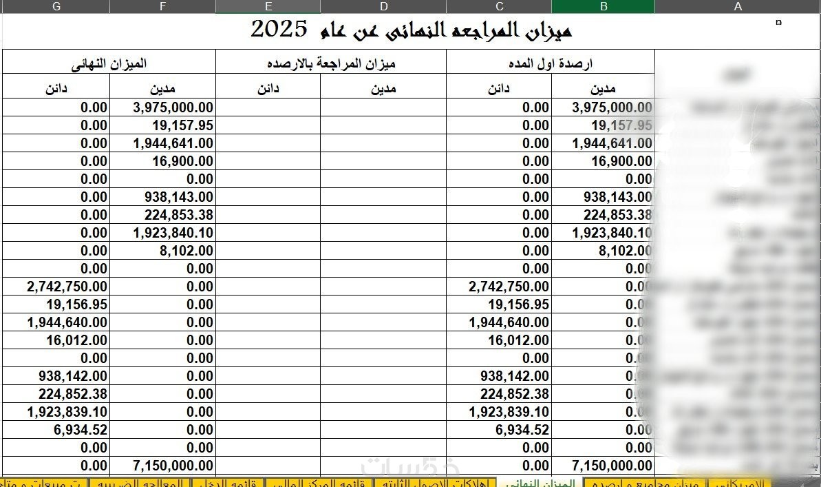 تسليم العمل على شيت إكسيل منسق يحتوي على معادلات تضمن توازن القيد بشكل تلقائي ومنع الأخطاء البشرية.