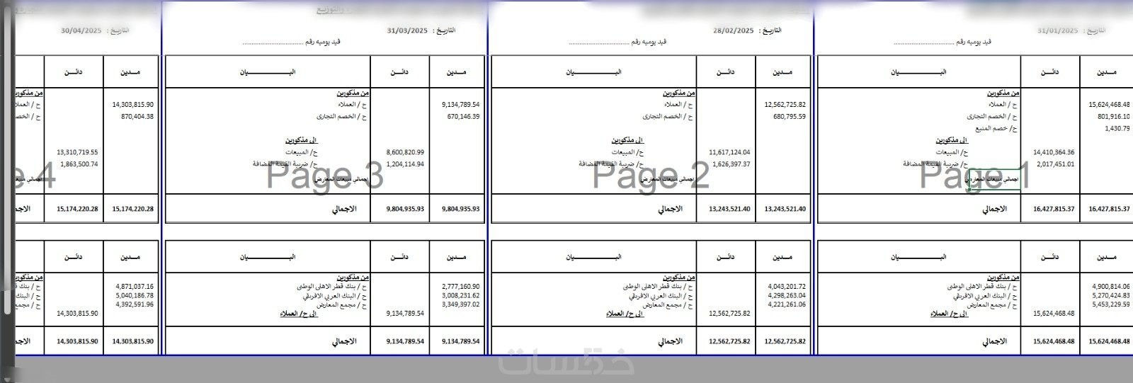 تسجيل واثبات 100 قيد يومية + ميزان المراجعة
