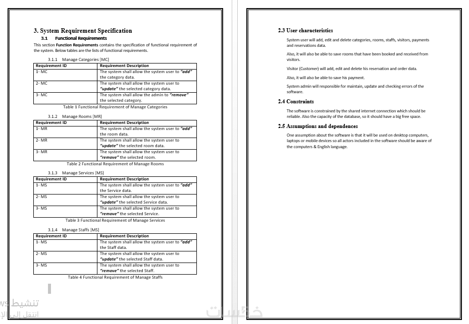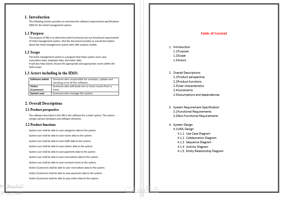 الخدمة عبارة عن ملف مكون من 5 صفحات لوثيقة SRS بصيغة Word أو PDF.