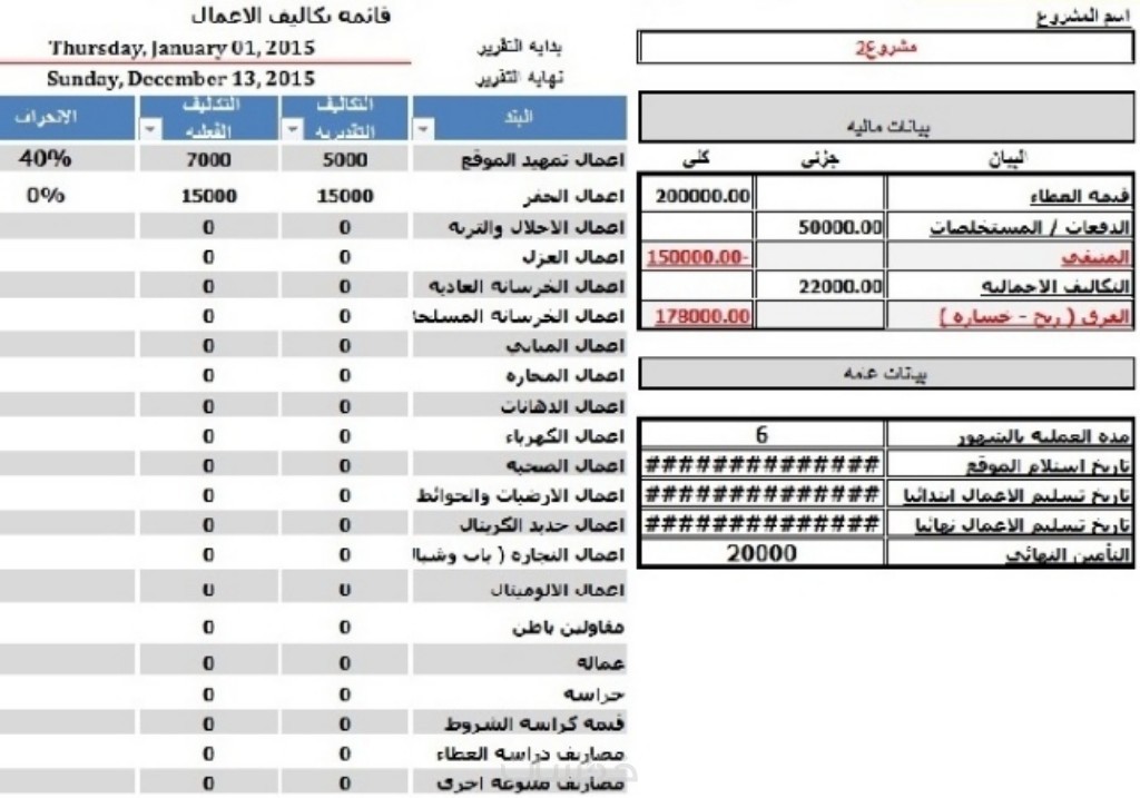 * معادلات تلقائية لحساب التكاليف الاجمالية والربح الصافي