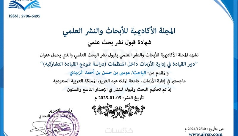 شهادة قبول/شهادة نشر (Certificate)