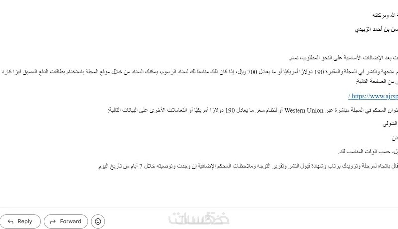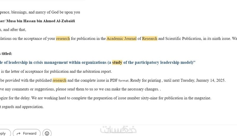 - رسالة استلام البحث في مرحلة الإنتاج
