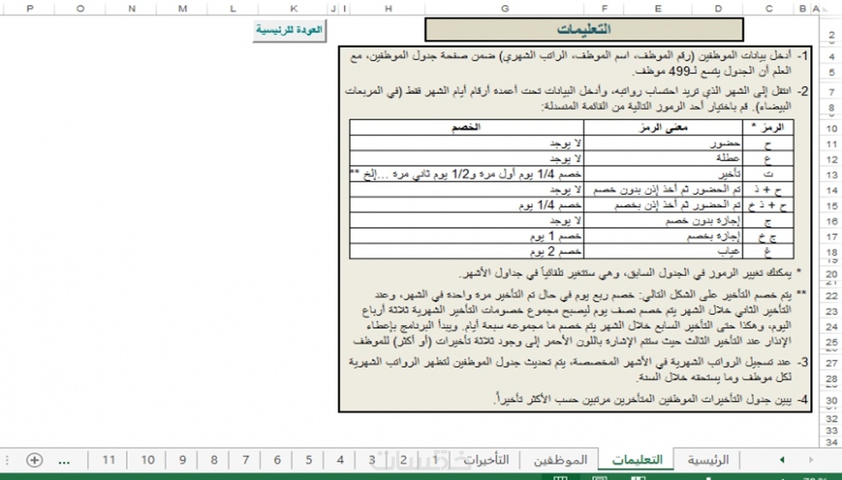 سأقدم لك برنامج مبسط على Excel قمت بتصميمه لأجل احتساب رواتب الموظفين تبعاً لمحددات تتضمن الخصومات على الغيابات والتأخيرات والإجازات بدون راتب... إلخ. مع إمكانية تعديل المحددات لتتناسب مع نظام الرواتب الخاص بك. كل هذا بـ 5$ فقط.