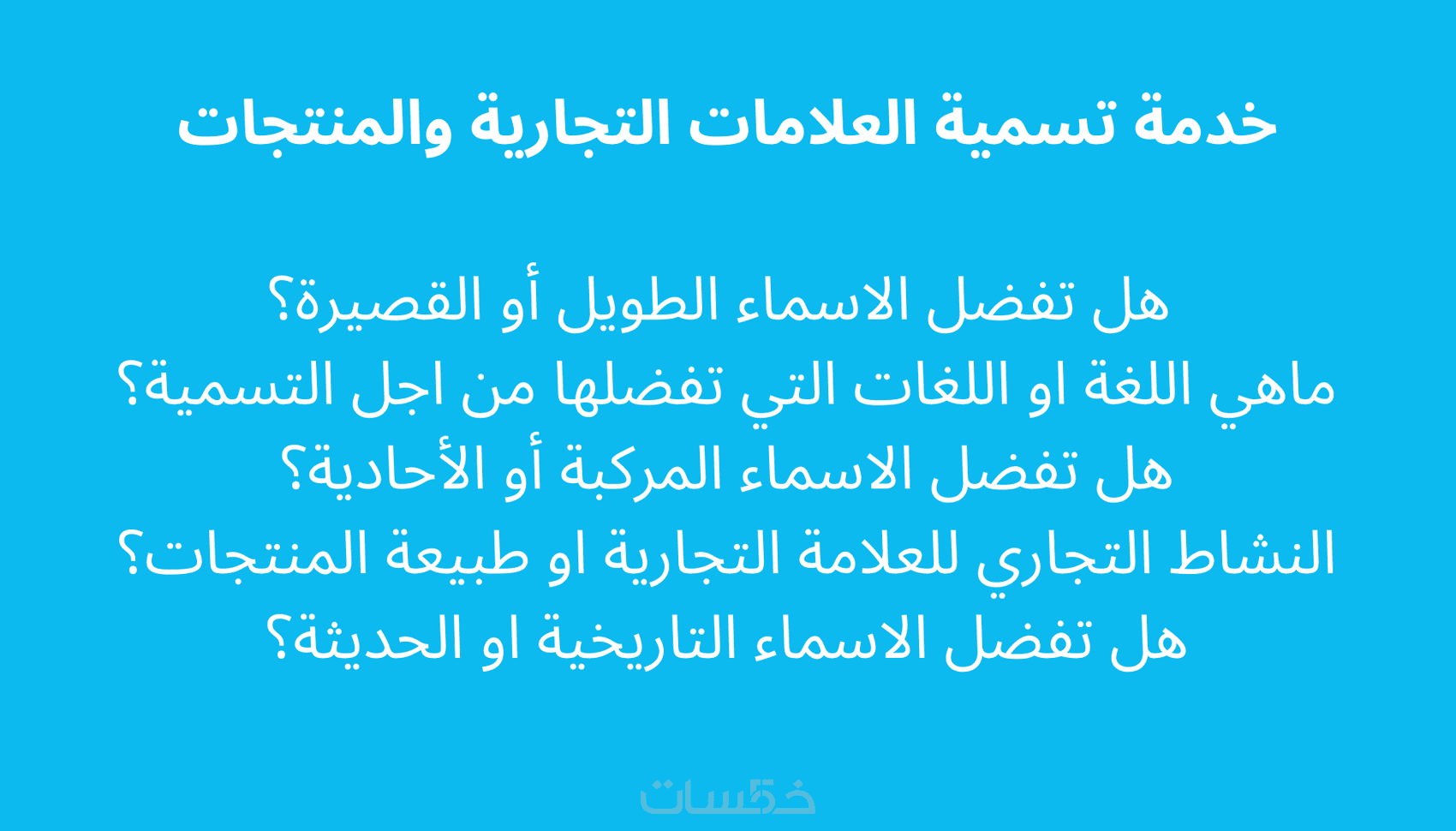 • مرحبا بك في الخدمة الاحترافية لتسمية العلامات التجارية والمنتجات