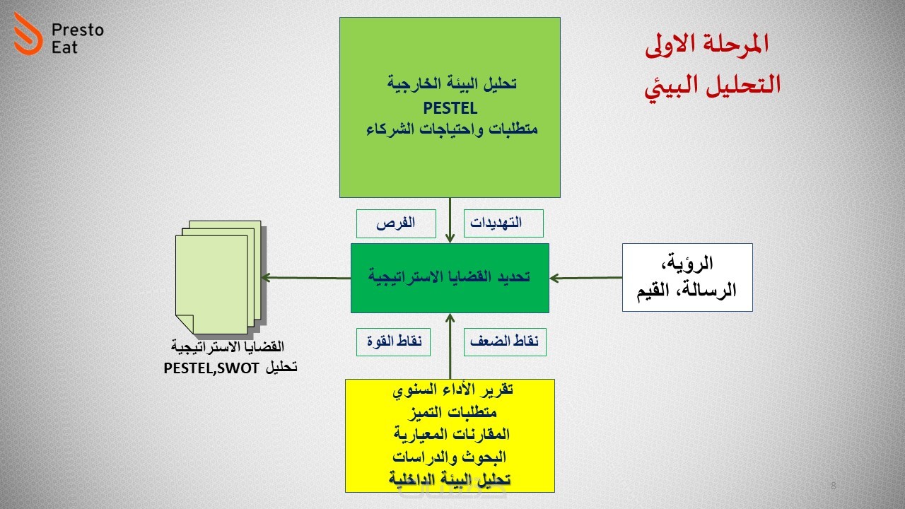 تحليل البيئة والمعلومات: تقييم العوامل الداخلية والخارجية التي تؤثر على المنظمة لتوجيه الخطط.