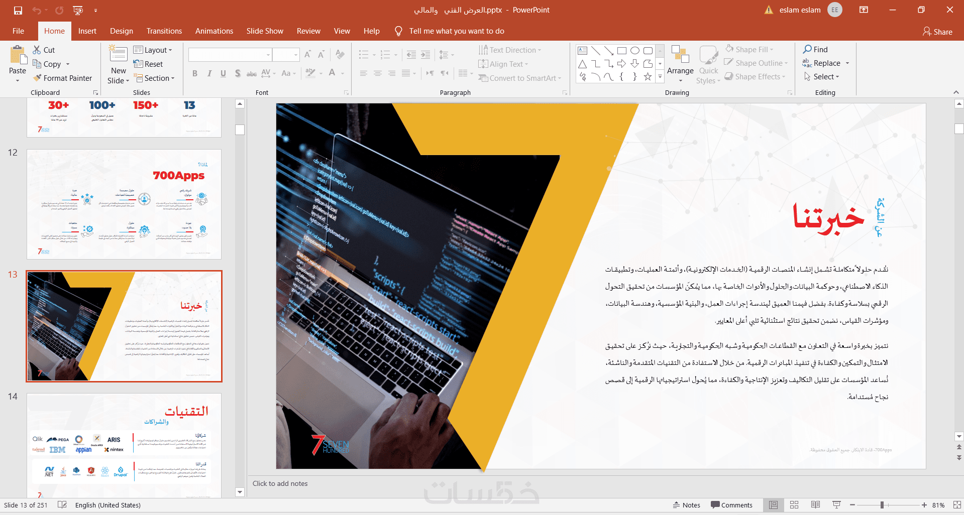 2- إعداد عرض فني احترافي يشمل: