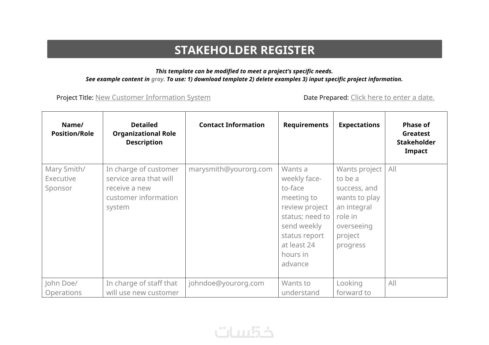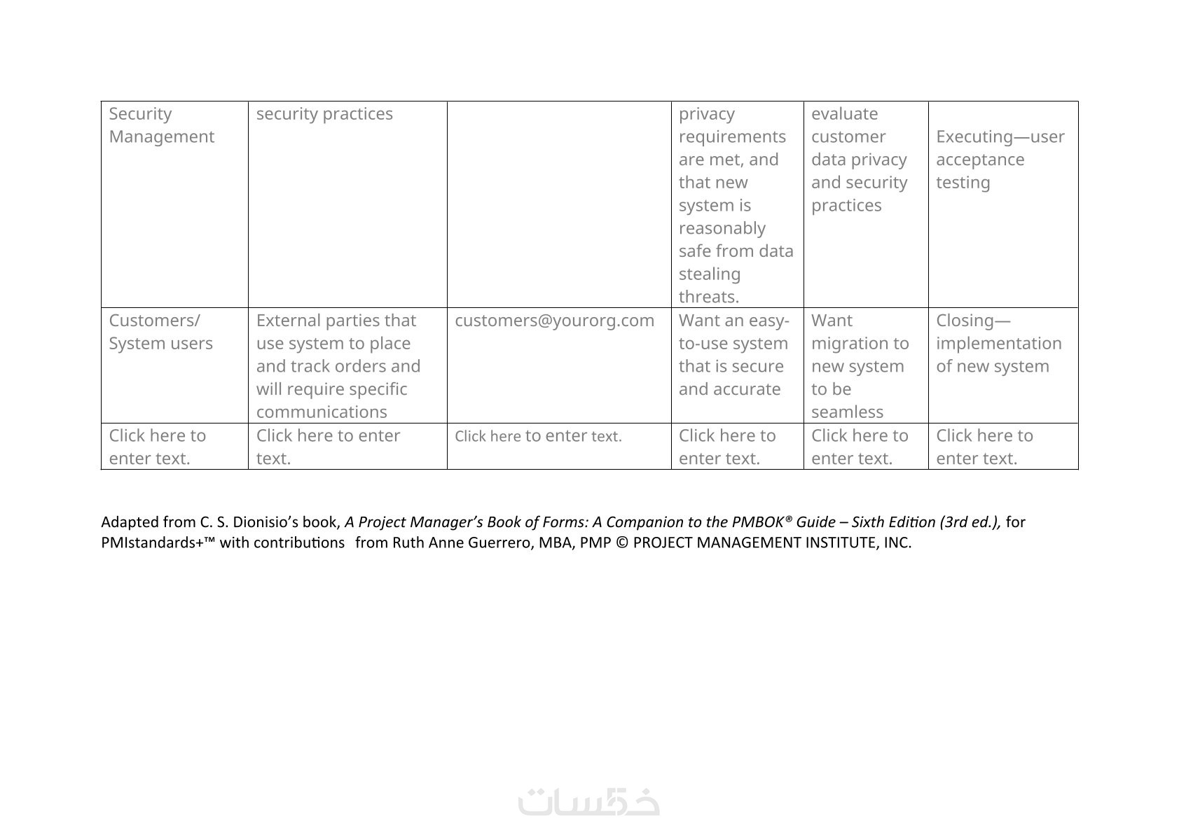 إعداد وثيقة واحدة فقط من اختيارك (إما ميثاق المشروع Project Charter أو سجل أصحاب المصلحة Stakeholders Register).