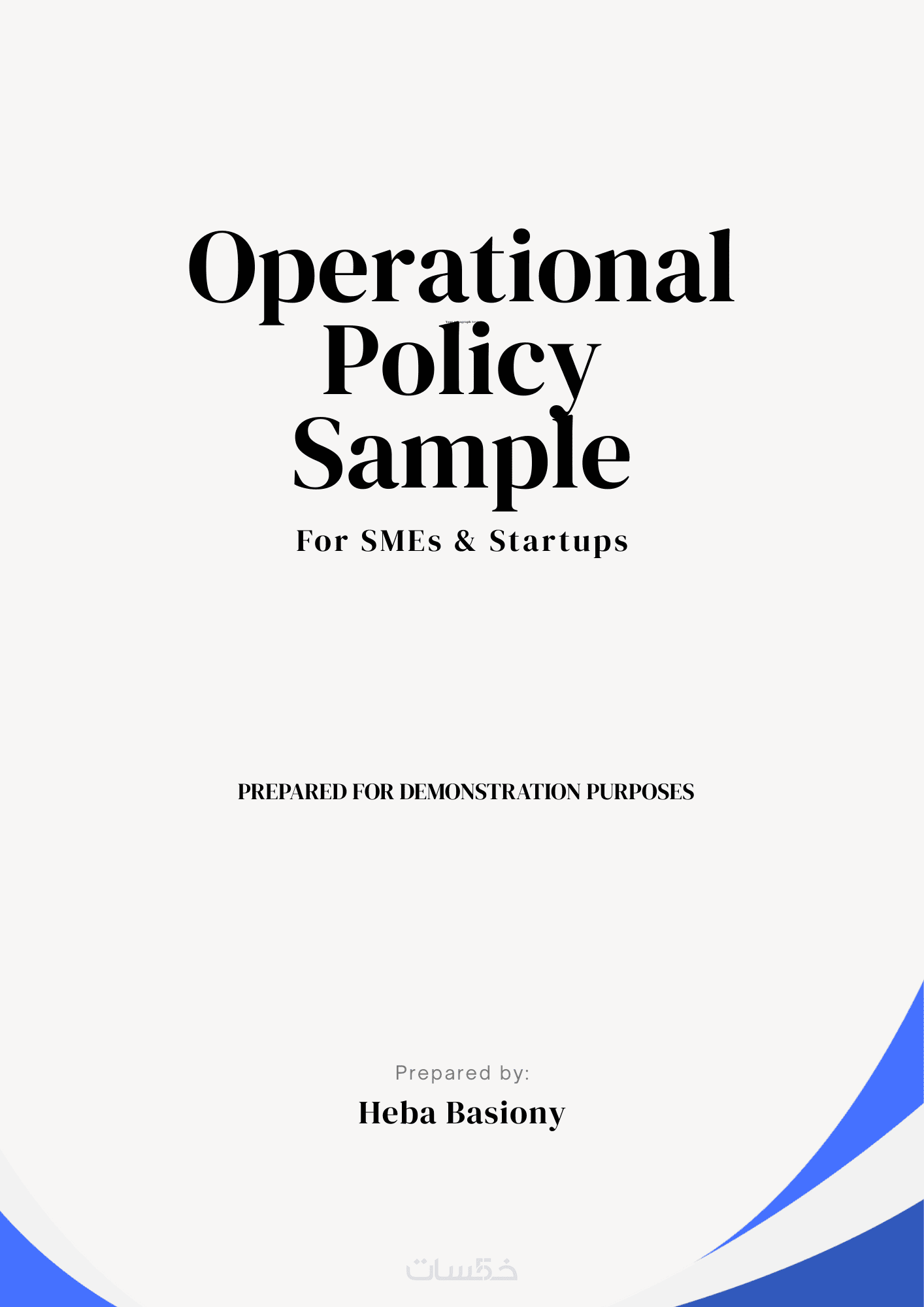 الخدمة الأساسية تشمل إعداد سياسة تشغيلية واحدة مختصرة ومخصصة حسب نشاط العميل، بمتوسط 2–3 صفحات (800–1000 كلمة)، وتتضمن الغرض، نطاق التطبيق، المسؤوليات، والإطار العام للإجراءات.