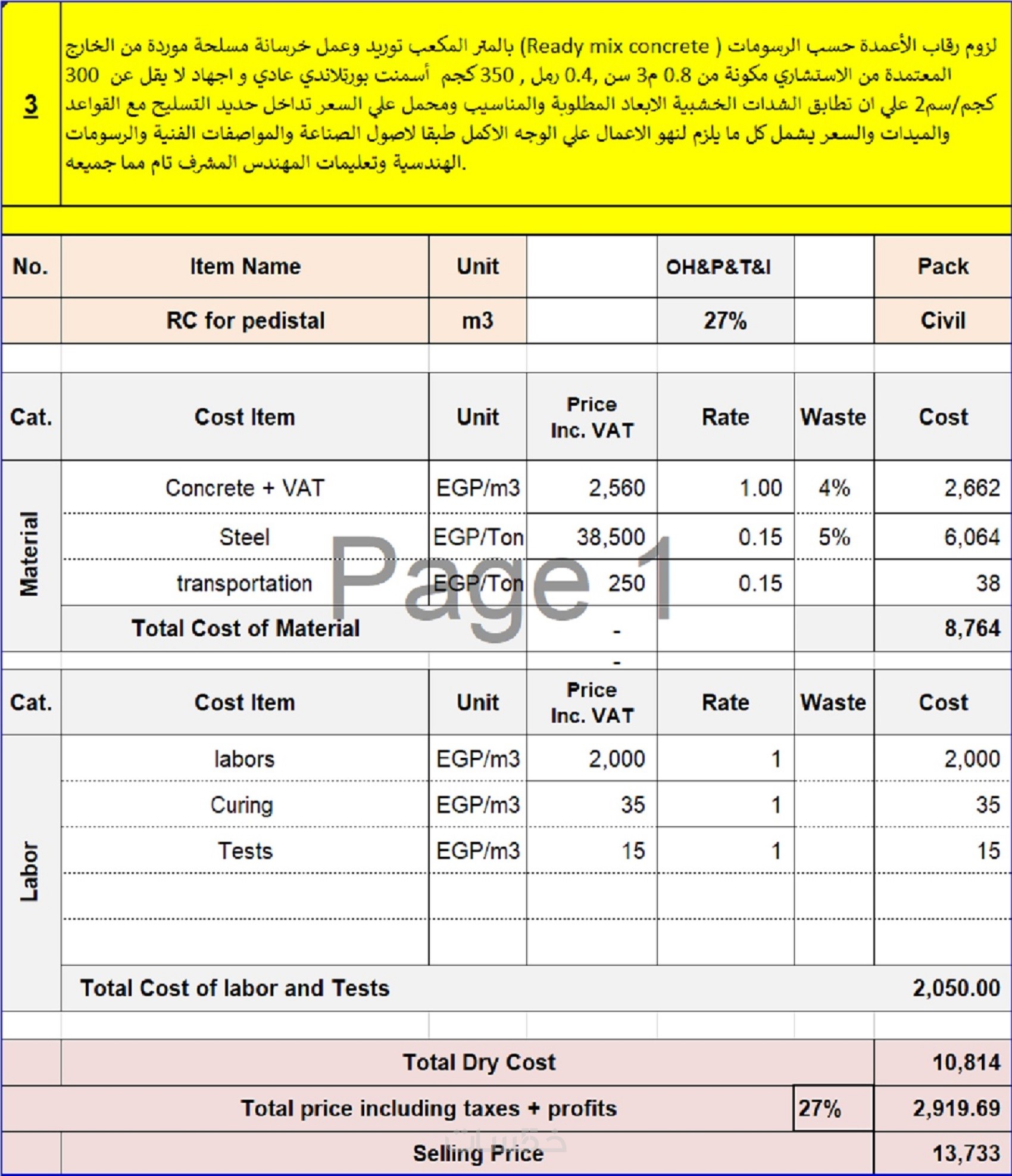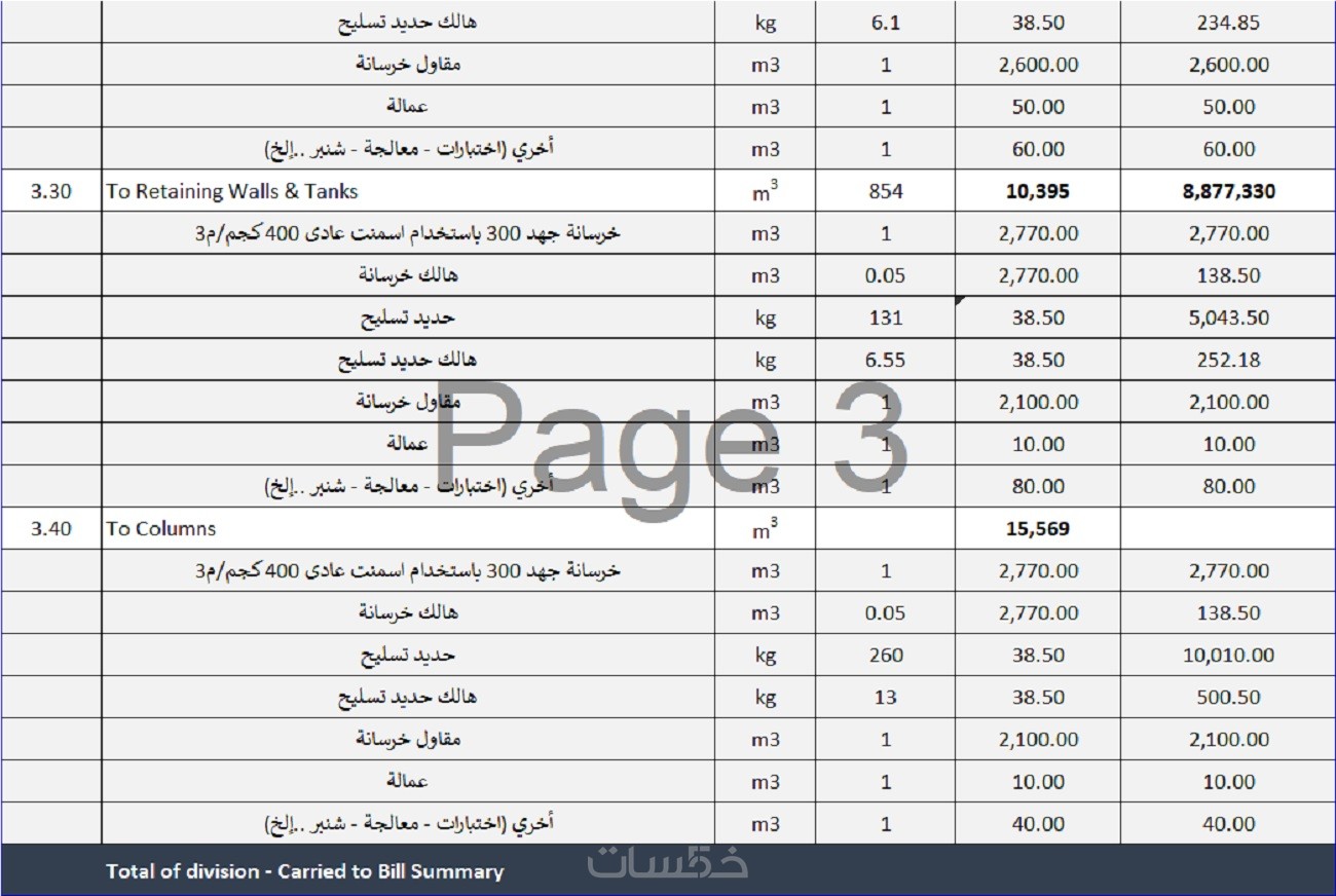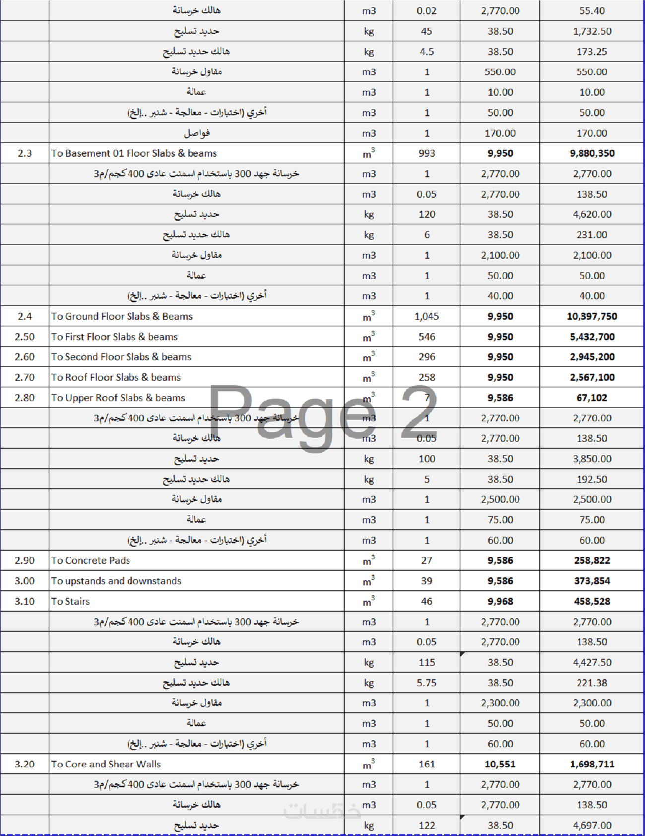 ملف Excel يحتوي على جداول الكميات (BOQ) وملف PDF ملخص للأعمال والدراسة بدا من مساحة ٢٠٠ متر
