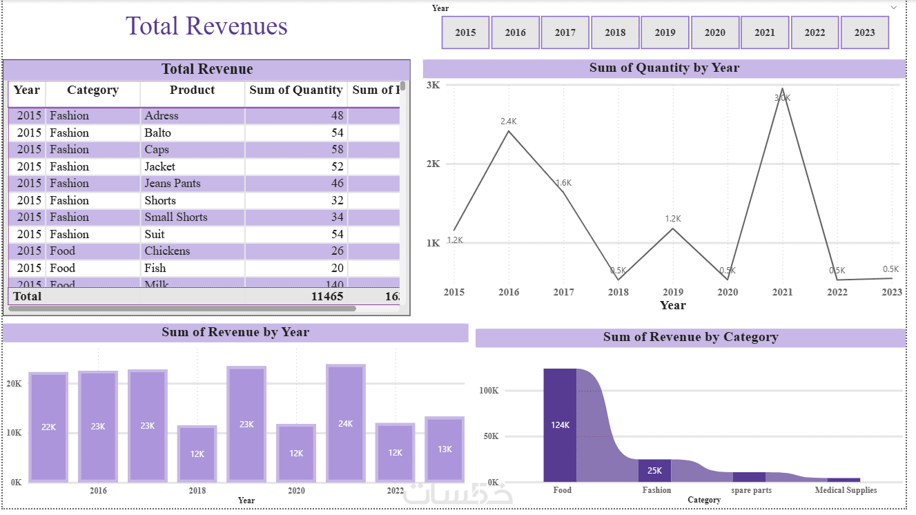 إضافة حتى 3 فلاتر (Slicers) للتحكم في عرض البيانات (مثل التاريخ أو المنتج).