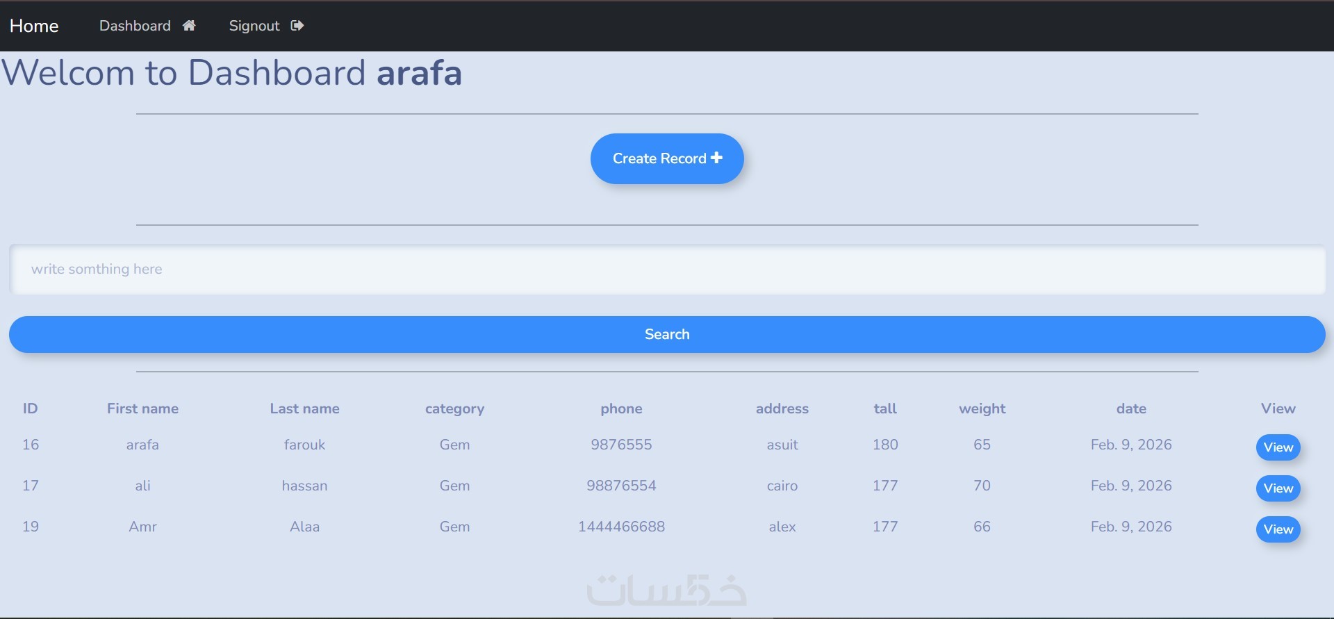 مشروع إدارة سجلات العملاء مبني على Django، يتضمن تسجيل/تسجيل دخول المستخدمين ولوحة تحكم لعرض السجلات وإنشائها وتحديثها وحذفها، بالإضافة إلى البحث.