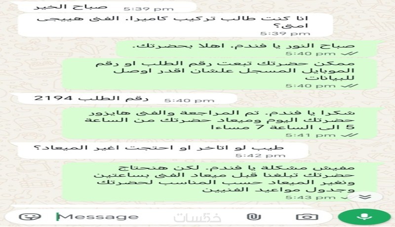 لا يمكن وضع صور حقيقية من ردى على محادثات العملاء فى المعرض اذ انها بيانات ومحادثة خاصة بالعملاء ولا يمكن عرضها.