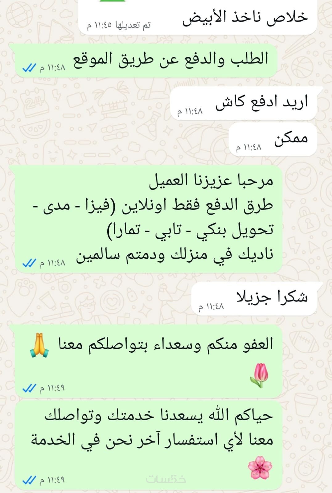 أتابع مع العميل بعد إتمام الطلب للتأكد من رضاه ومعالجة أي مشكلة قد تواجهه