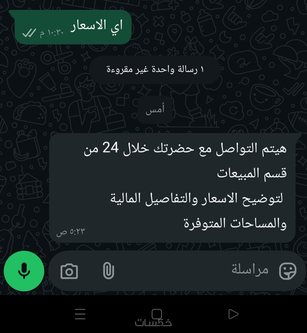 الخدمة الأساسية: الرد على رسائل الواتساب (لمدة 5 ساعات يوميًا لمدة يومين)