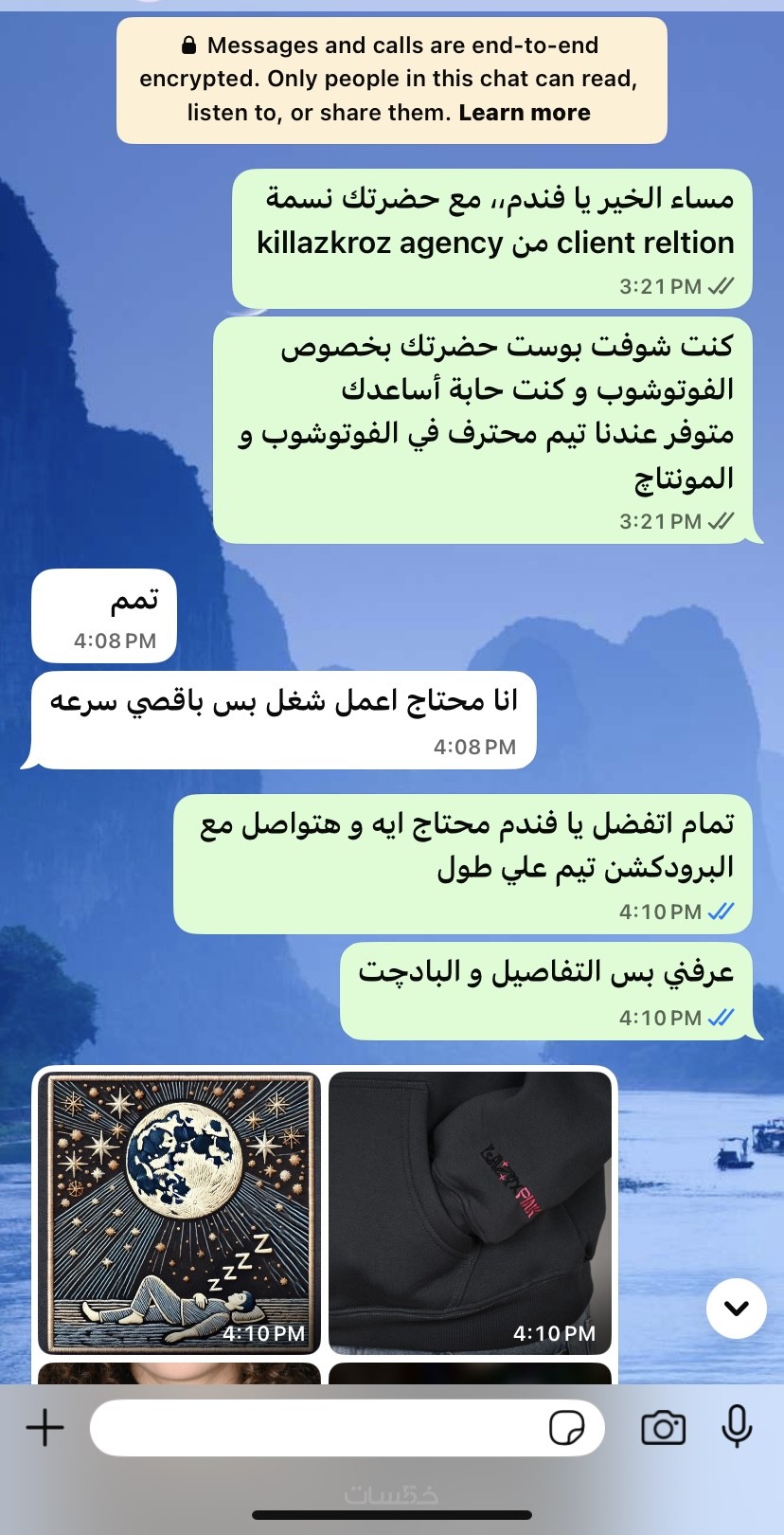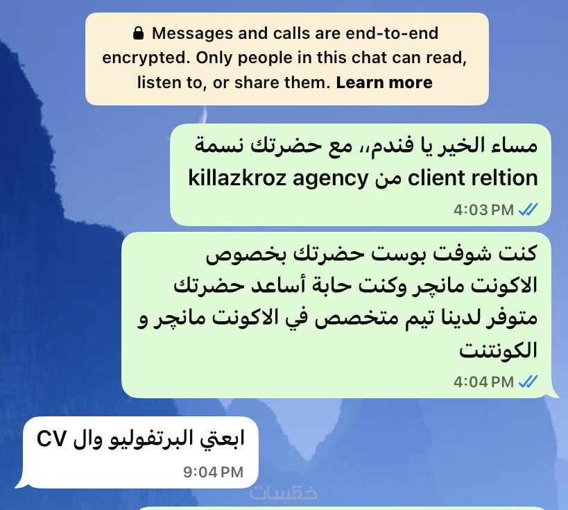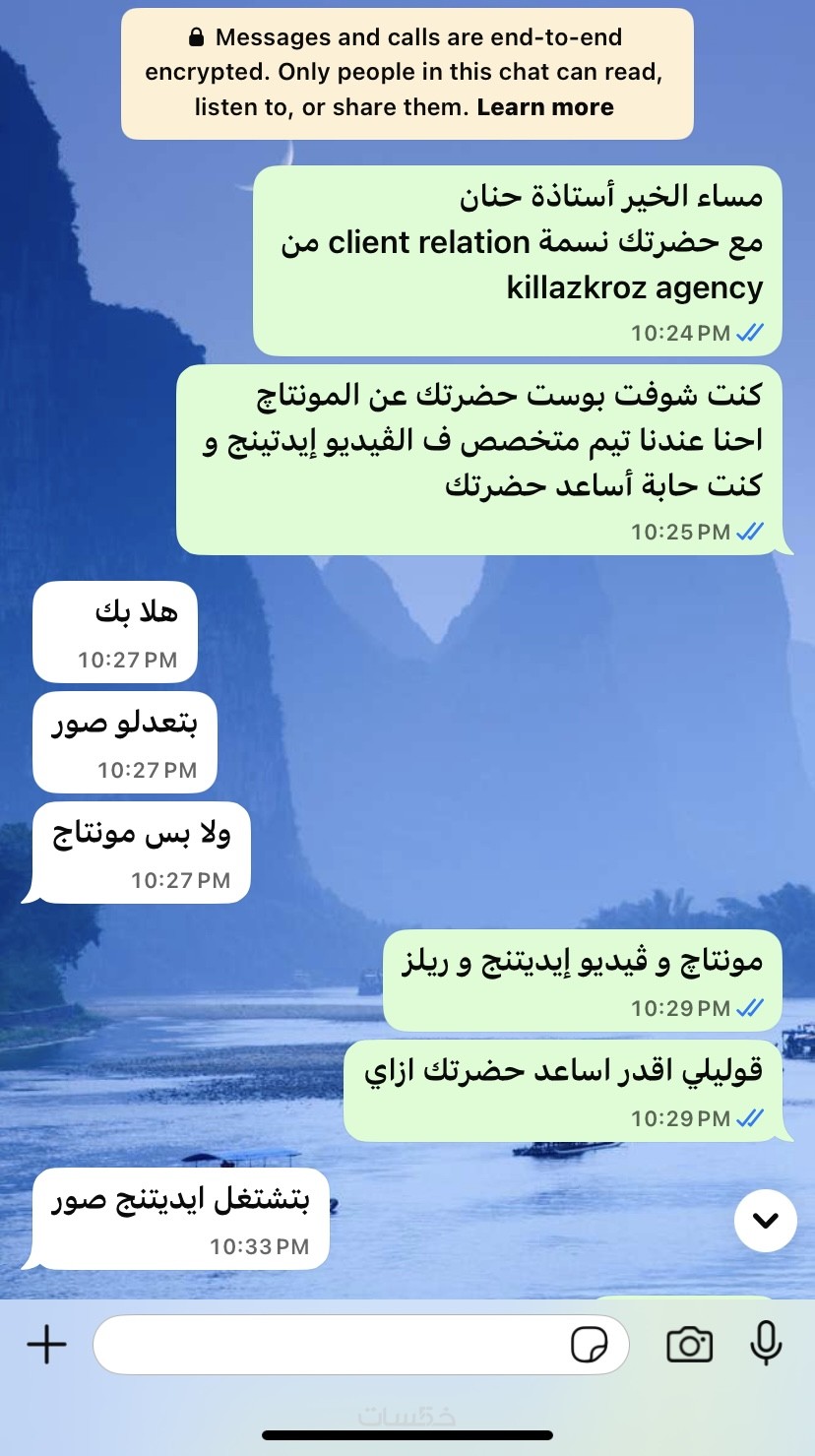 أقدّم خدمة الرد على رسائل العملاء عبر واتساب باحترافية تامة، تشمل الإجابة على الاستفسارات، توضيح تفاصيل المنتجات أو الخدمات، تأكيد الطلبات، وتنظيم الرسائل بشكل يضمن تجربة جيدة للعميل.