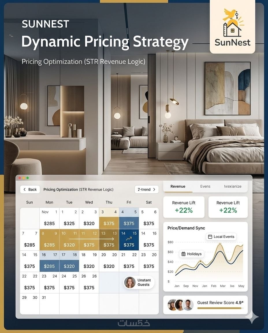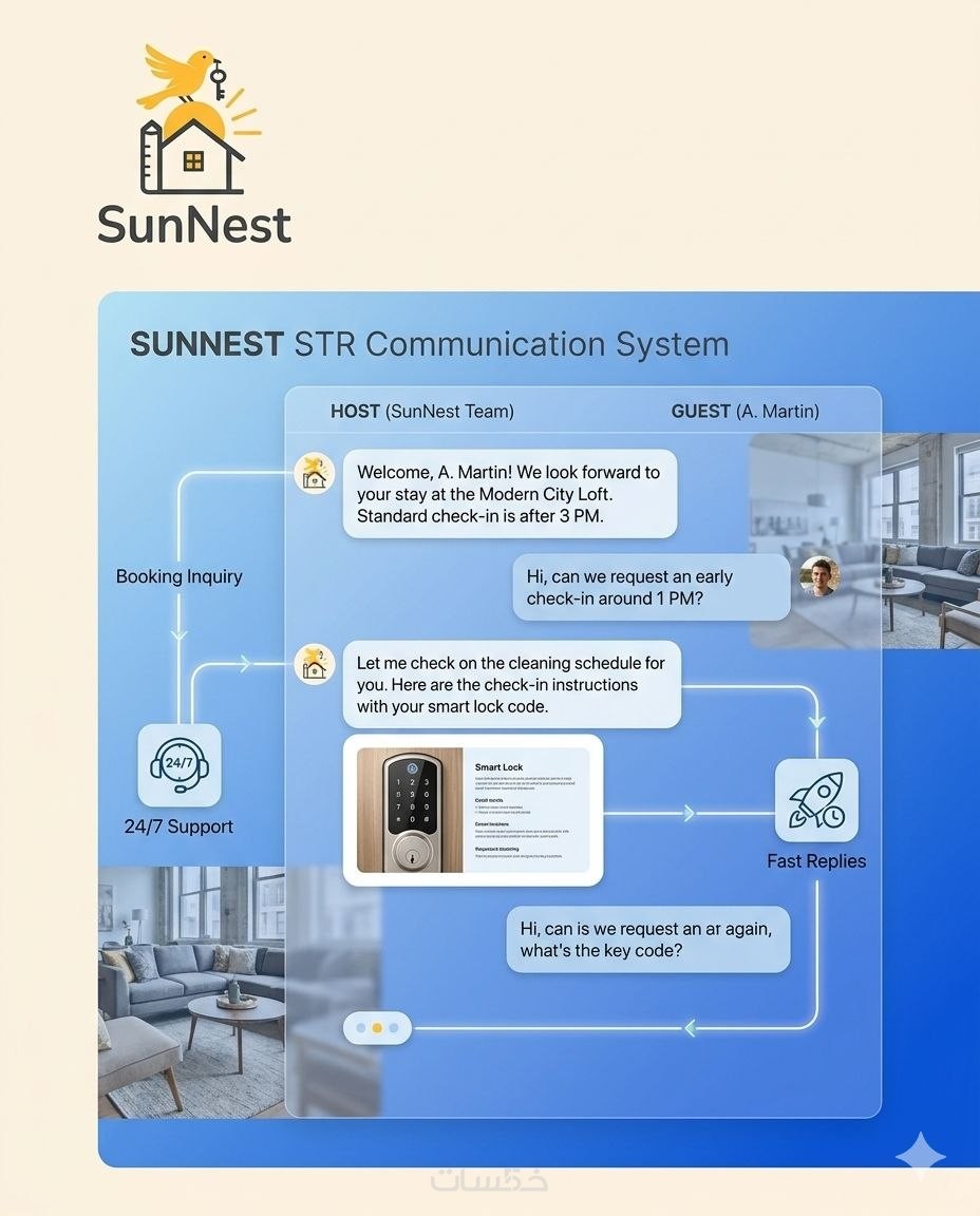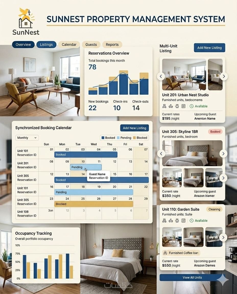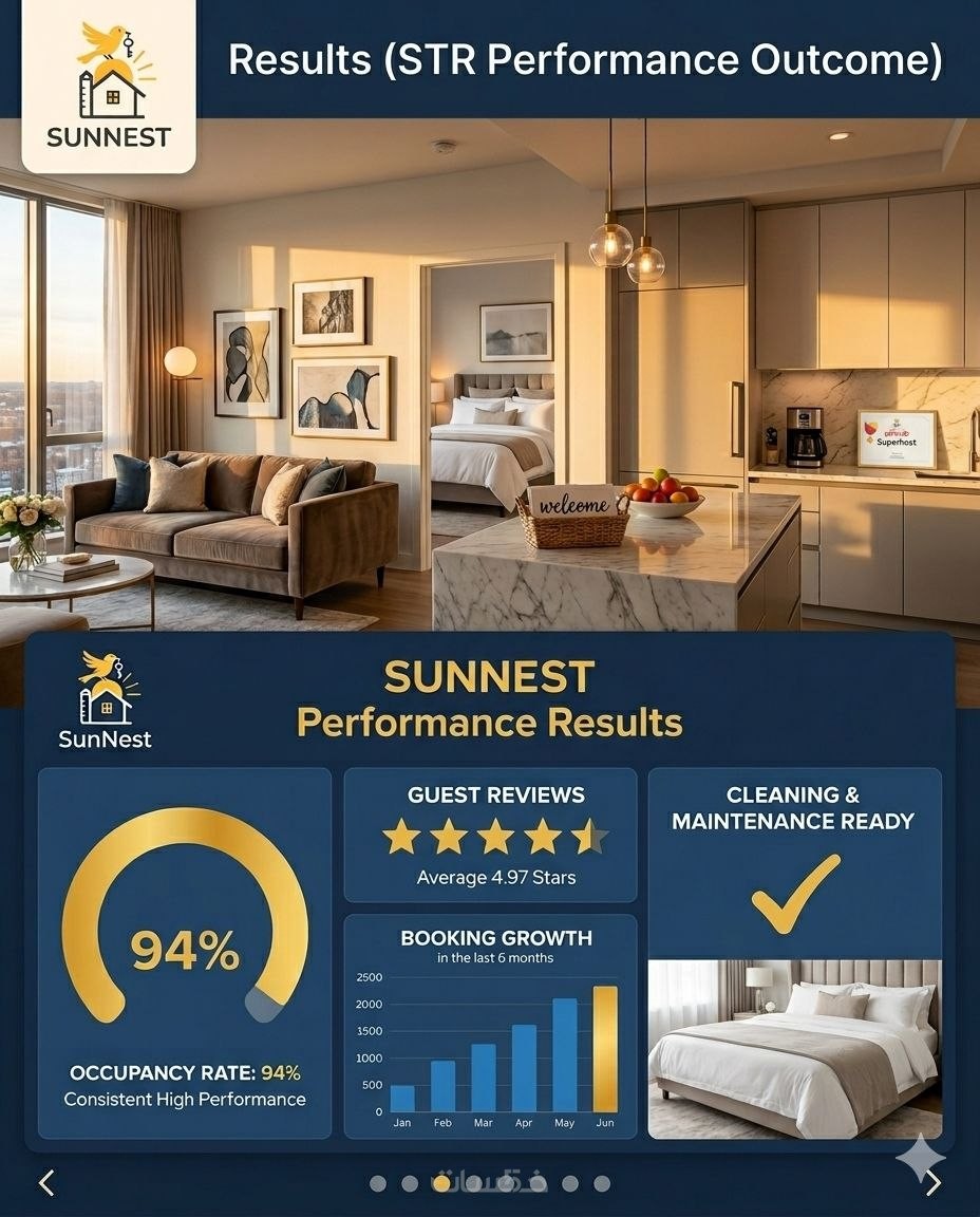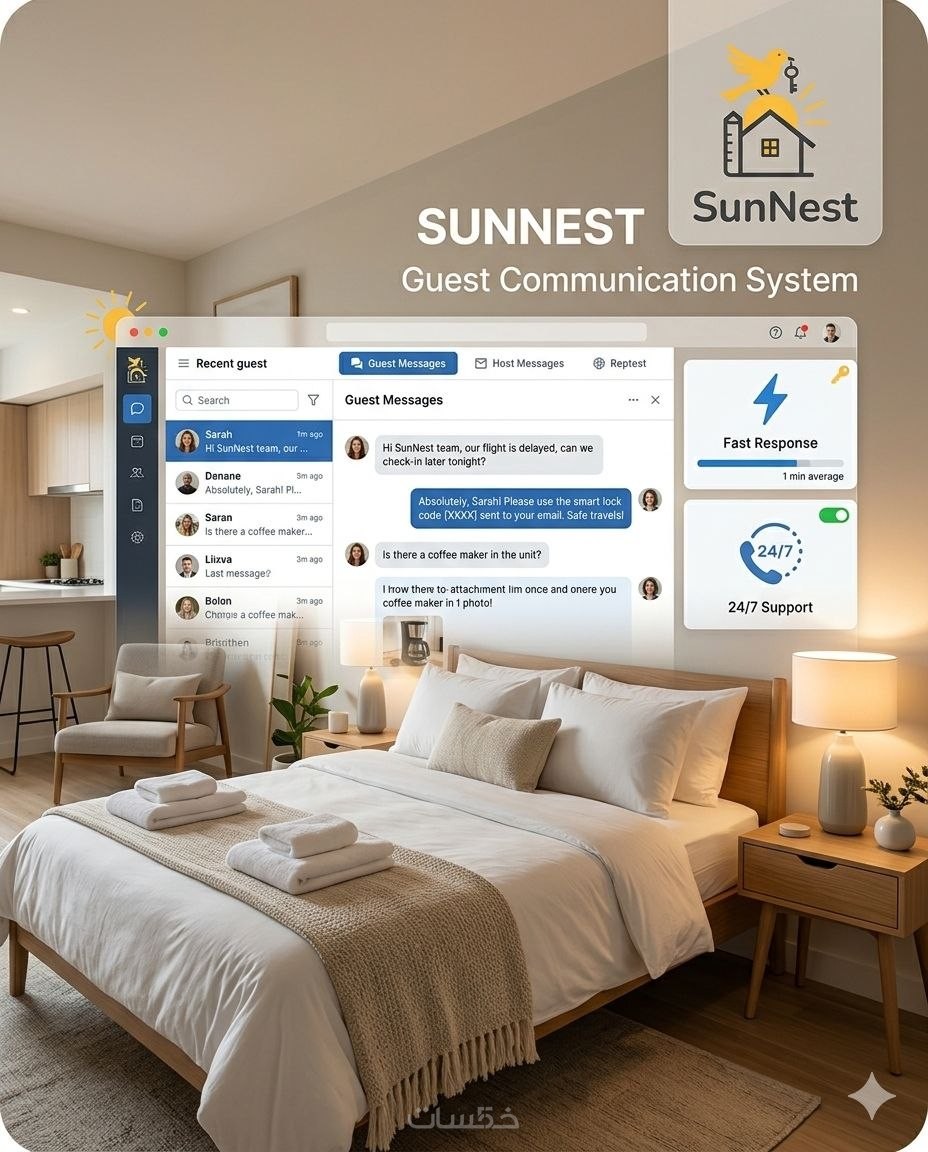 أعمل من خلال نظام SUNNEST لإدارة الشقق قصيرة المدى، مما يضمن تنظيم العمليات بالكامل وتقديم تجربة ضيف مميزة بدون مجهود منك.