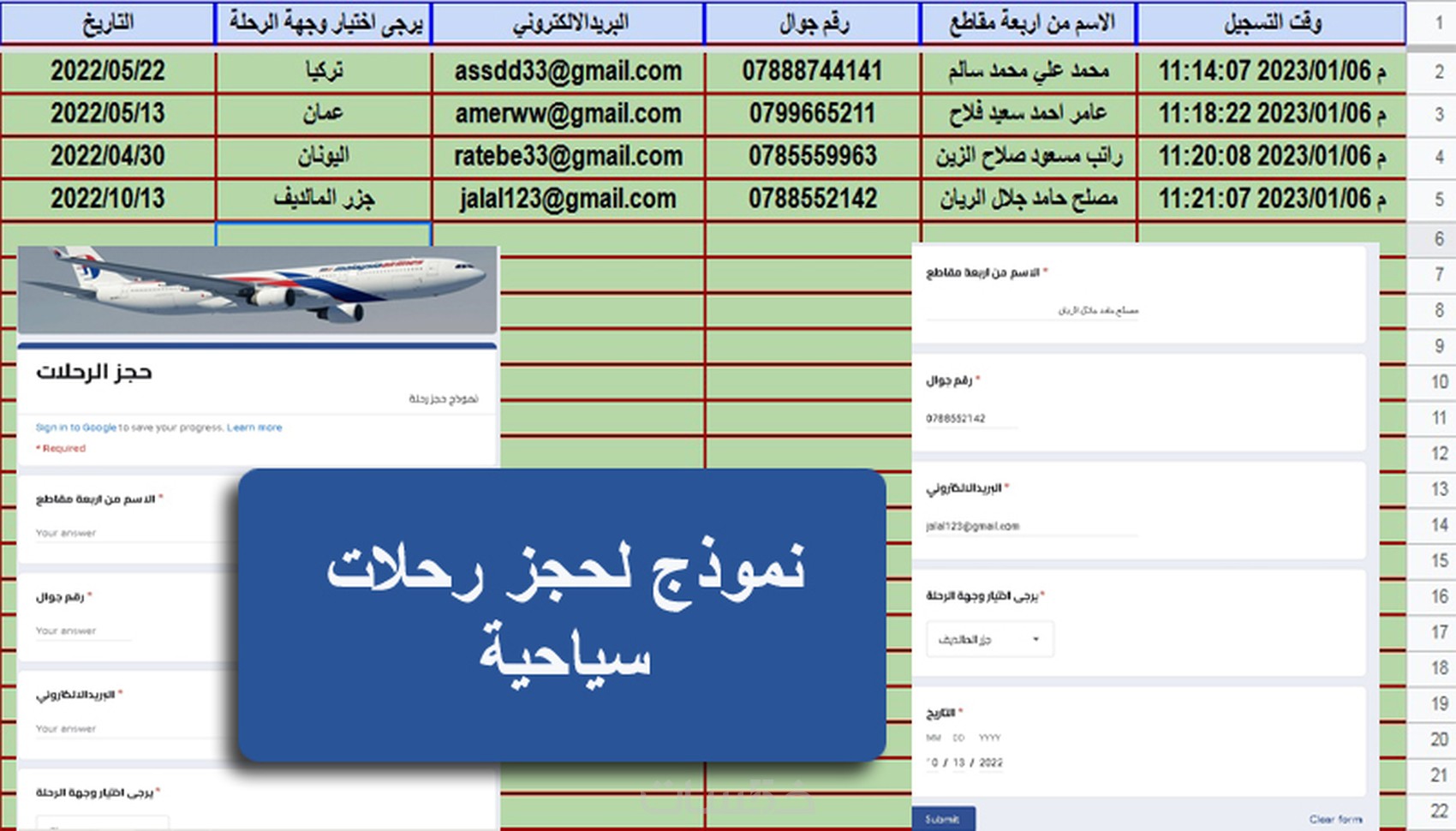 2- ربط النموذج مع جوجل شيت ليتم تخزين بيانات النموذج عليها .