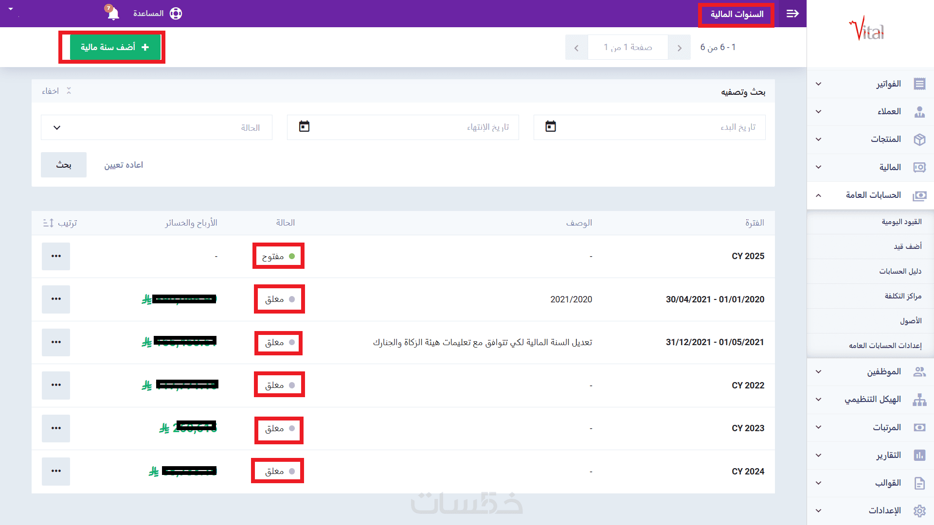 تقسيم الفترات المحاسبية أو اقفال السنة المالية لتصبح الادخالات غير قابلة للتعديل