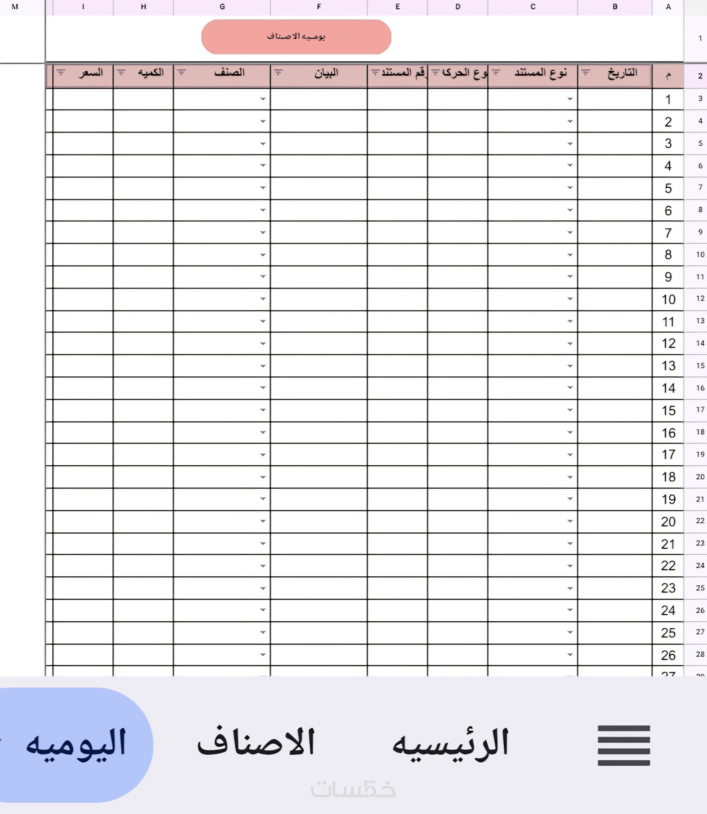 ثانيا تصميم صفحة اليومية لتسجل المبيعات والمشتريات وربطها بصفحة الأصناف
