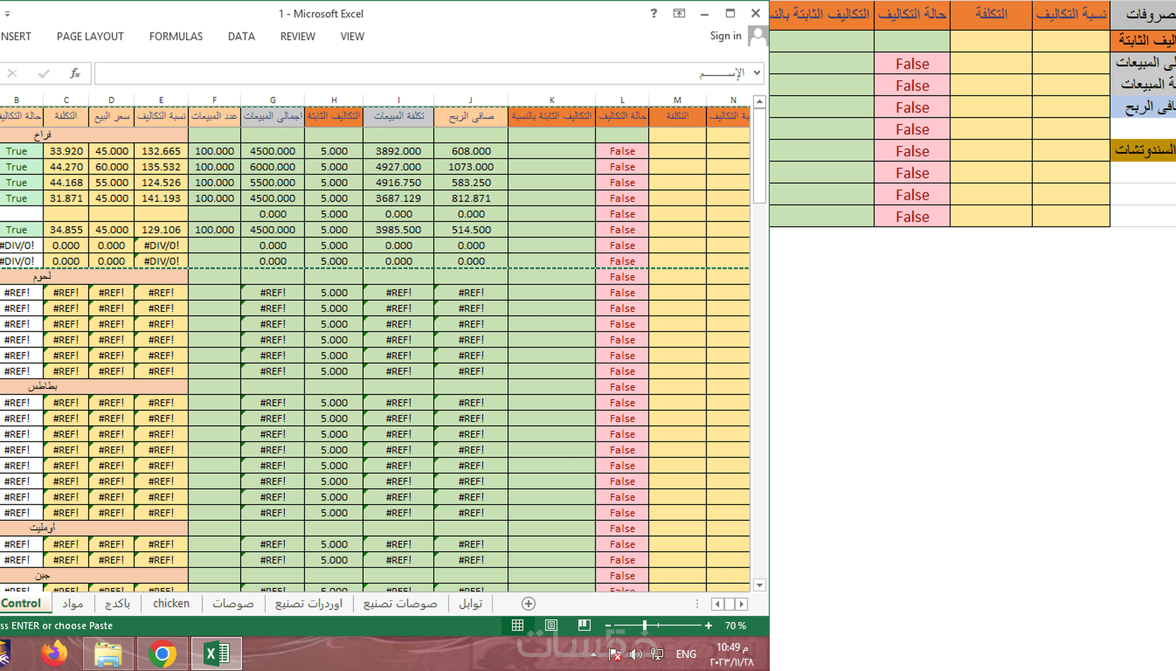 *فى الشيت الأول يحتوى على جميع المكونات من المادة الخام وسعر الشراء بدون حد اقصى لإضافة عدد المواد الخام.