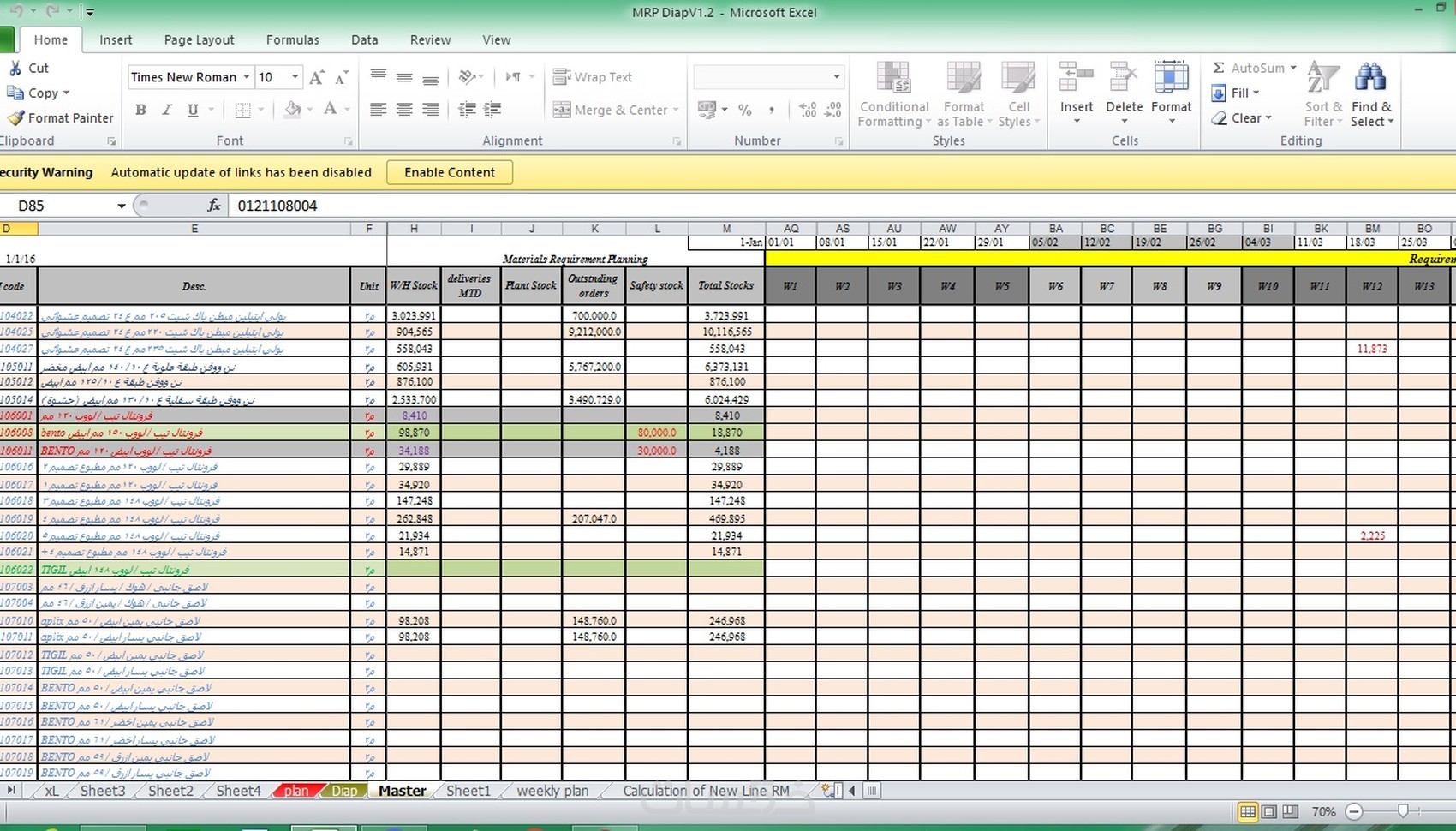 حيث يقوم البرنامج من احتساب المواد المطلوبة بعد ادخال خطط الانتاج كالتالى: