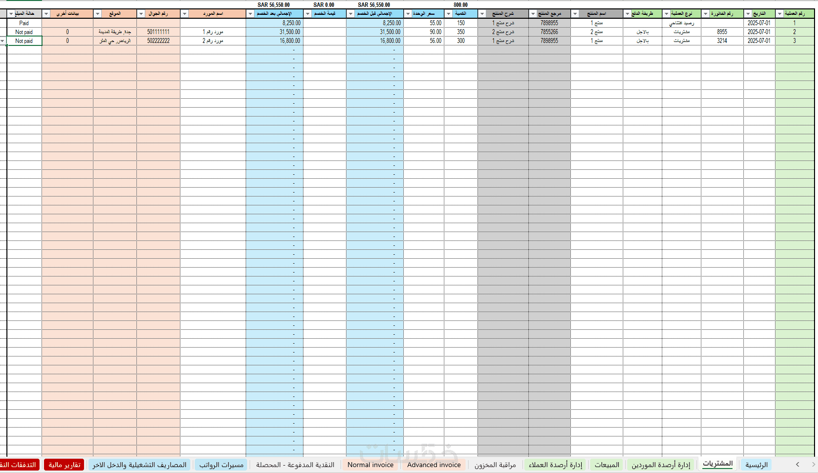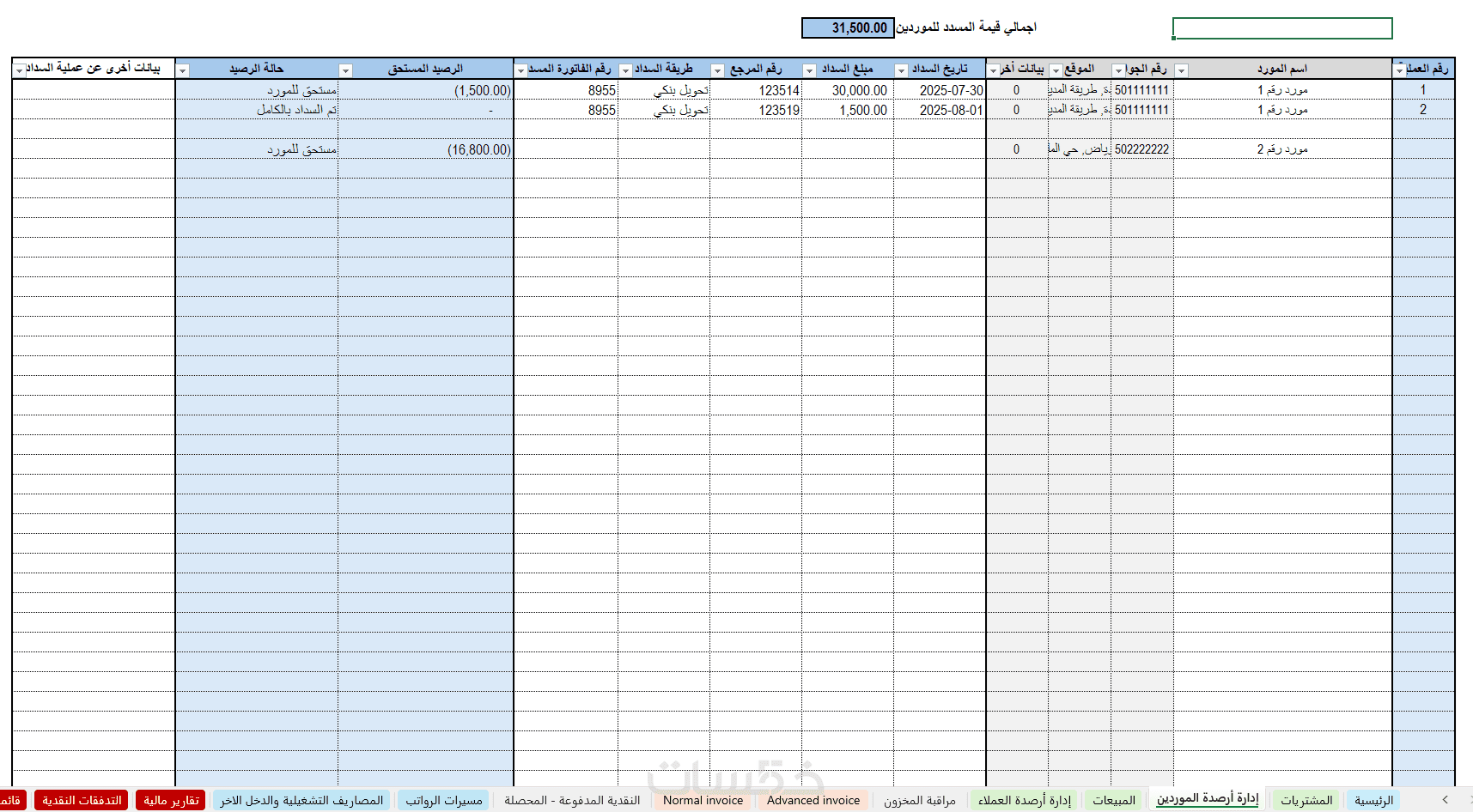 شاشة ادارة ارصدة الموردين مع الفاتورة
