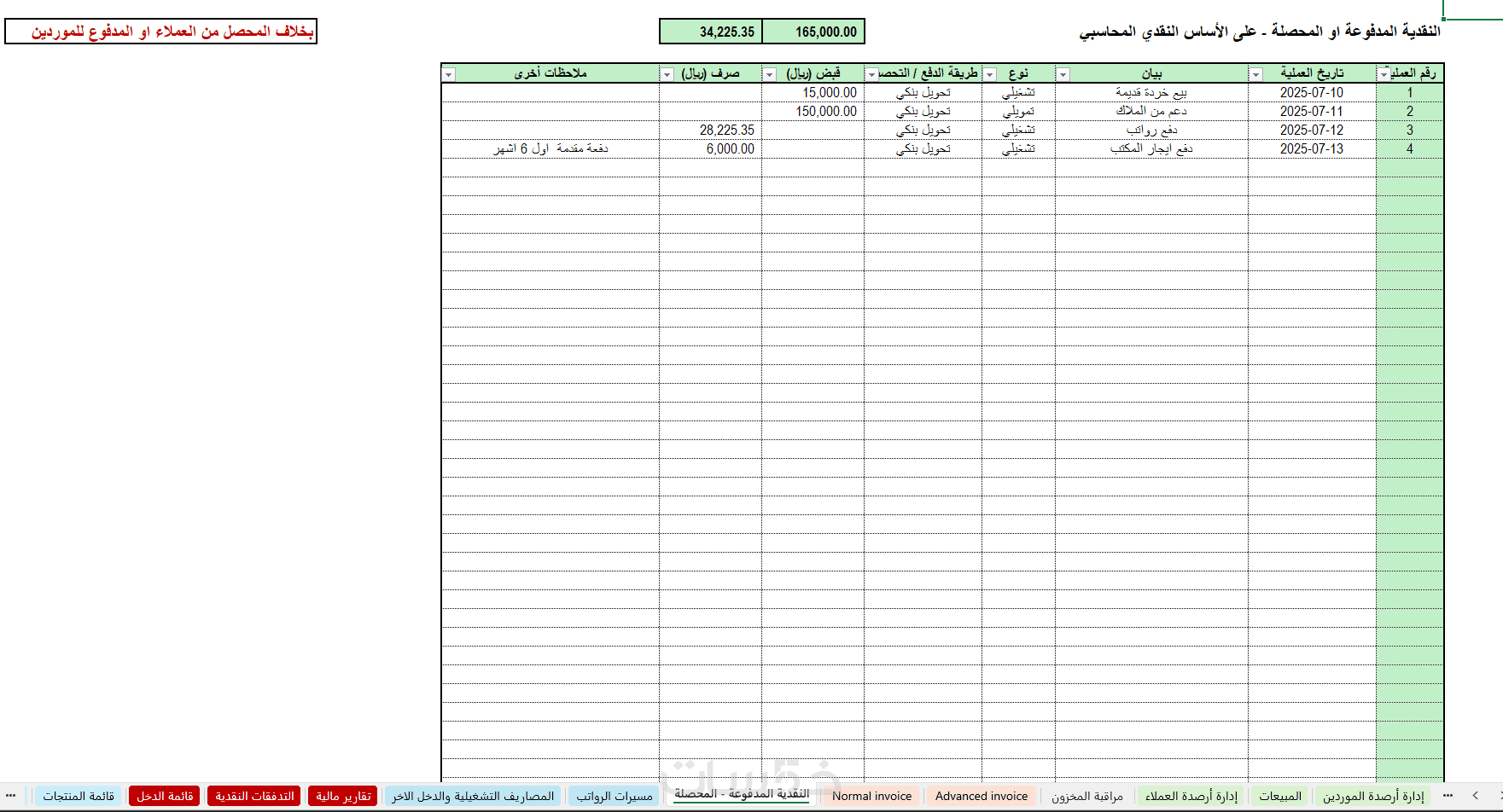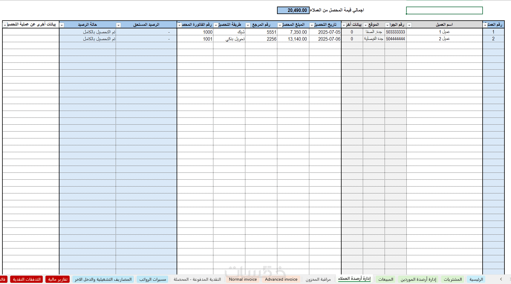 شاشة ادارة التحصيل من العملاء مع الفاتورة