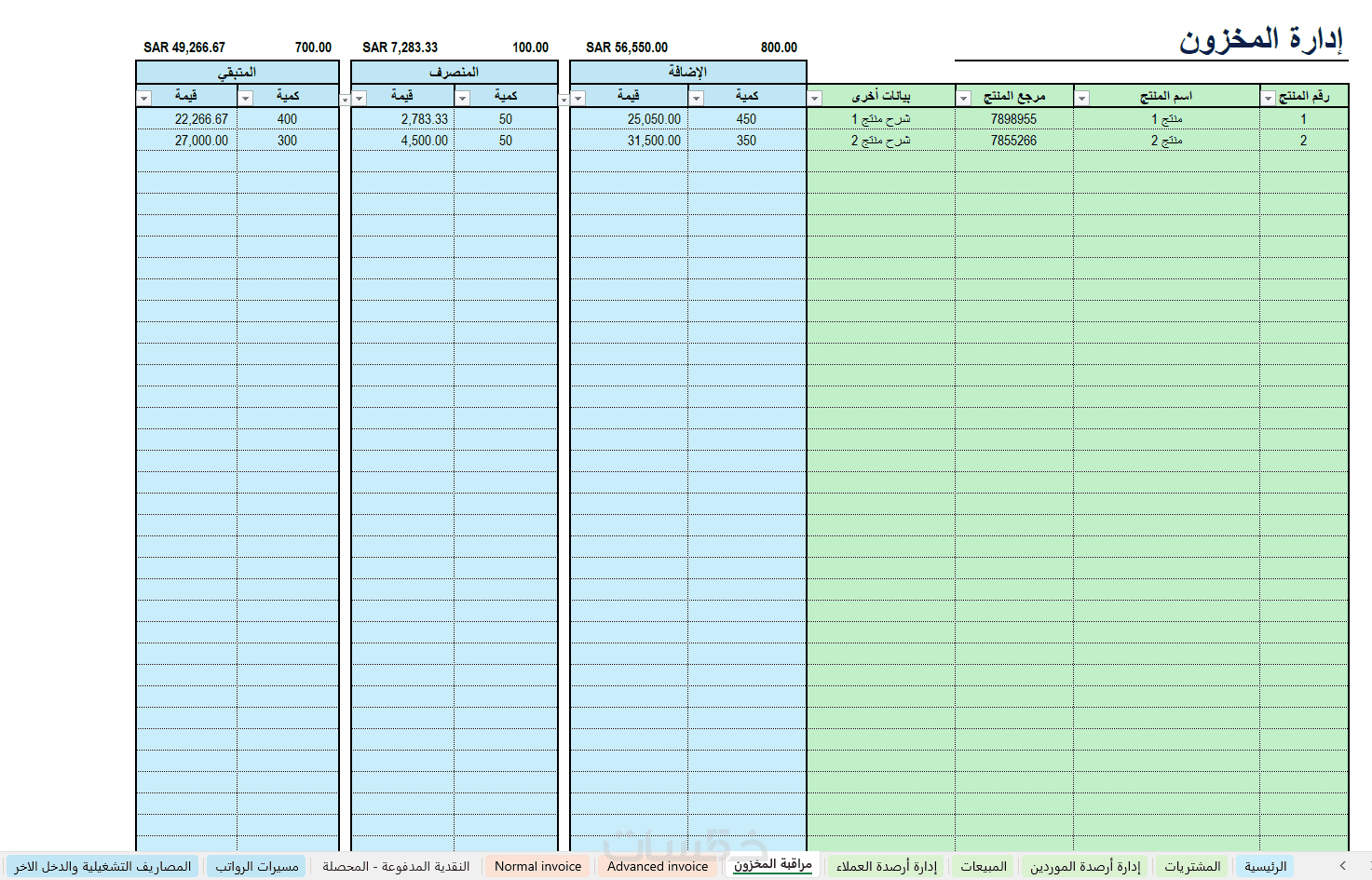 شاشة ادارة المخزون