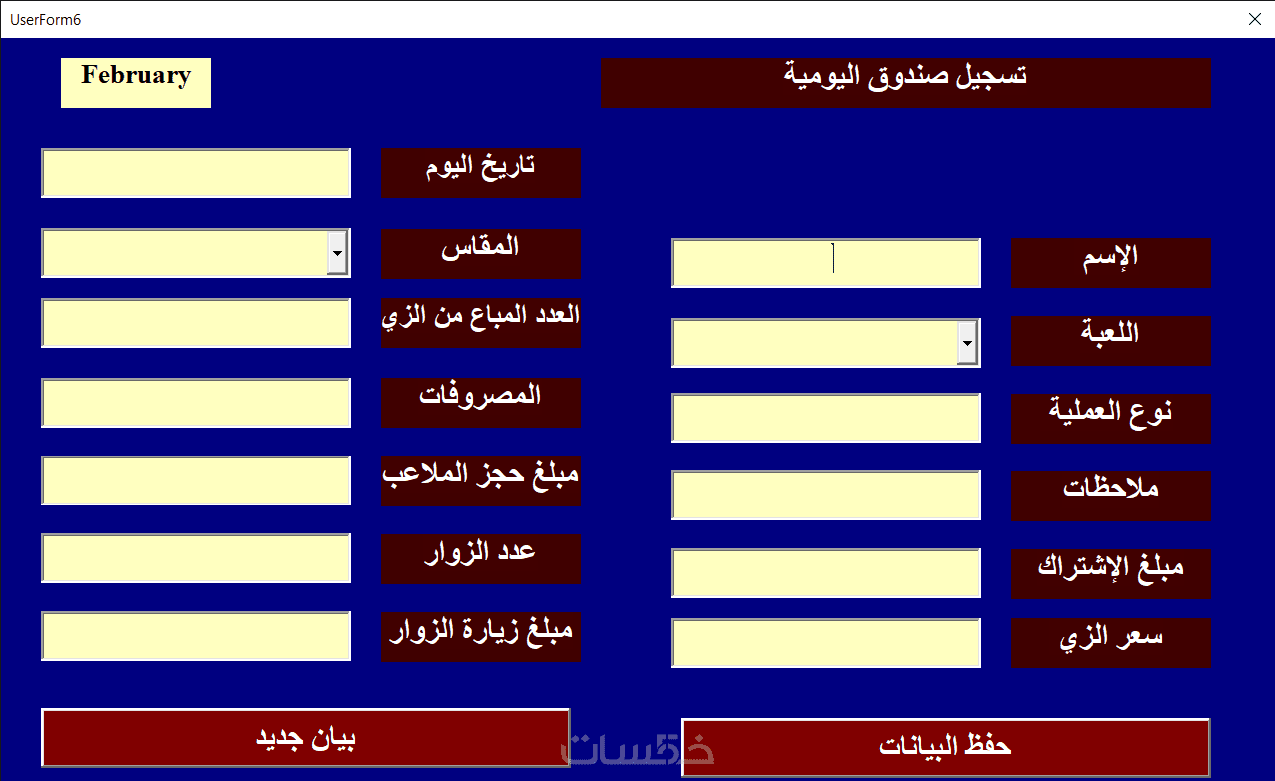 1-زر لتسجيل بيانات اللاعبين حيث تستطيع تسجيل التالي: