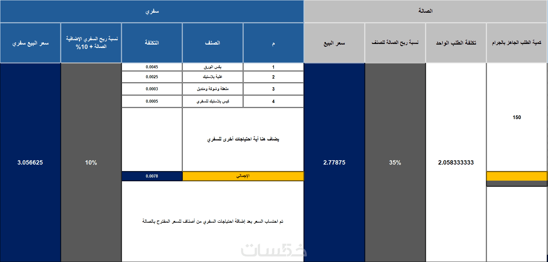 * احتساب تكاليف التعبئة والتغليف (سفري أو صالة).
