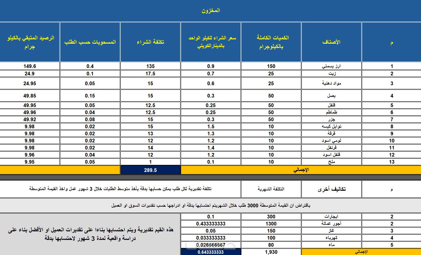 * حساب تلقائي لتكلفة المواد الخام من المخزون بالكيلو والجرام / الوحدة.