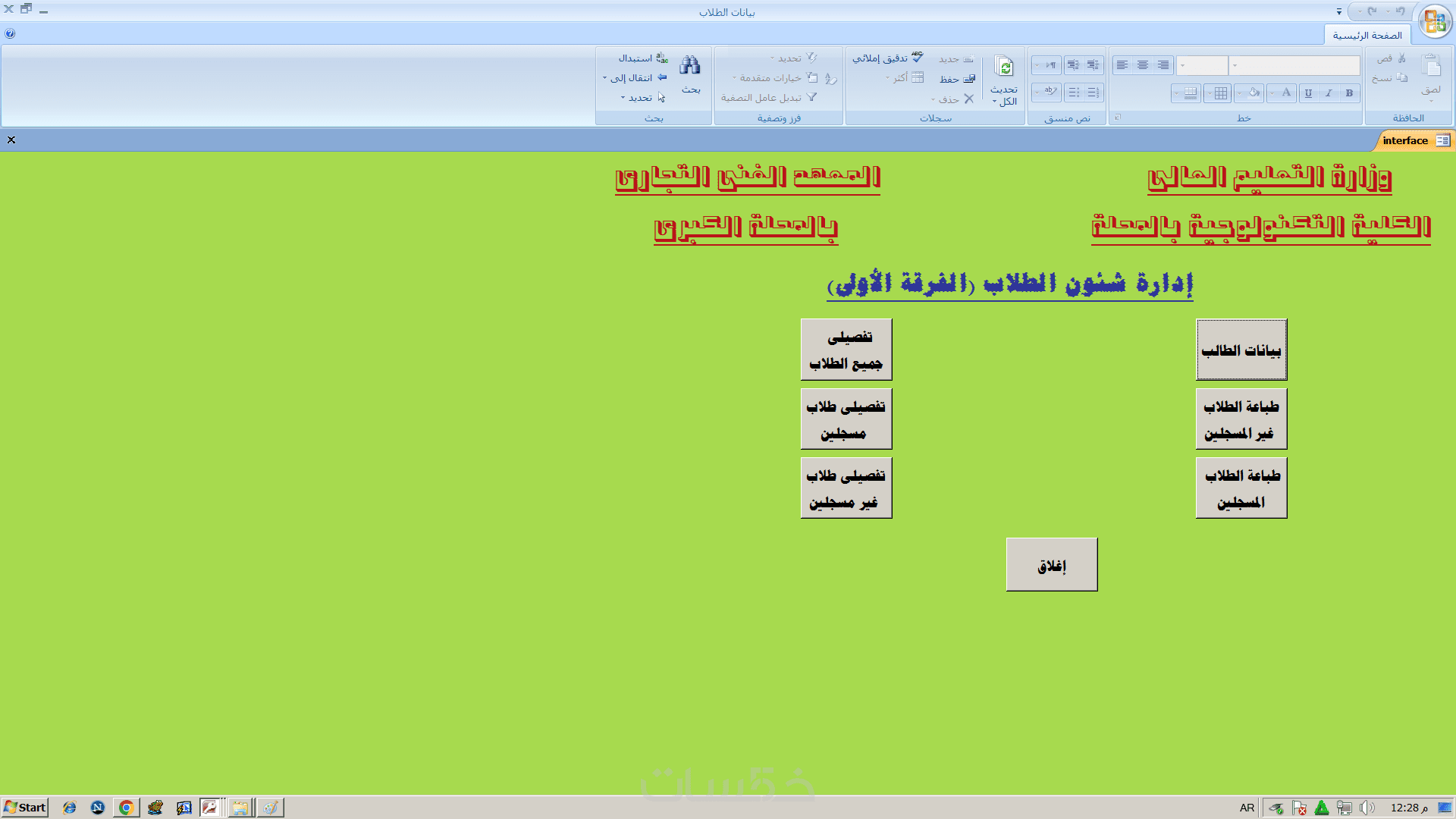 * تصميم قاعدة بيانات مبدئية تتضمن (جدولين وواجهة إدخال واحدة) كنموذج عمل.