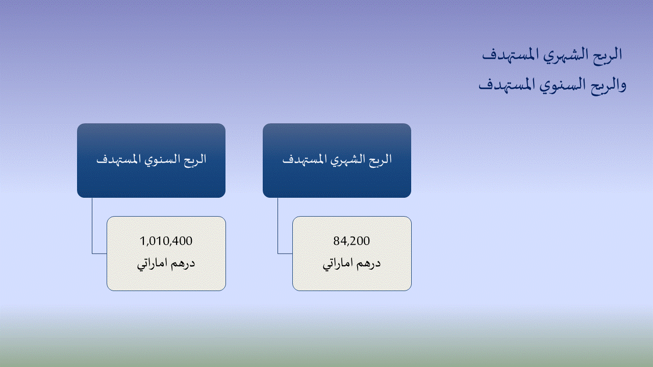 يشمل ( التكاليف للمشروع - التكاليف التاسيسية - التكاليف التشغيلية - الايردات المتوقعة - صافي الربح -العائد على الاستثمار - فترة استرداد رأس المال - الخ )