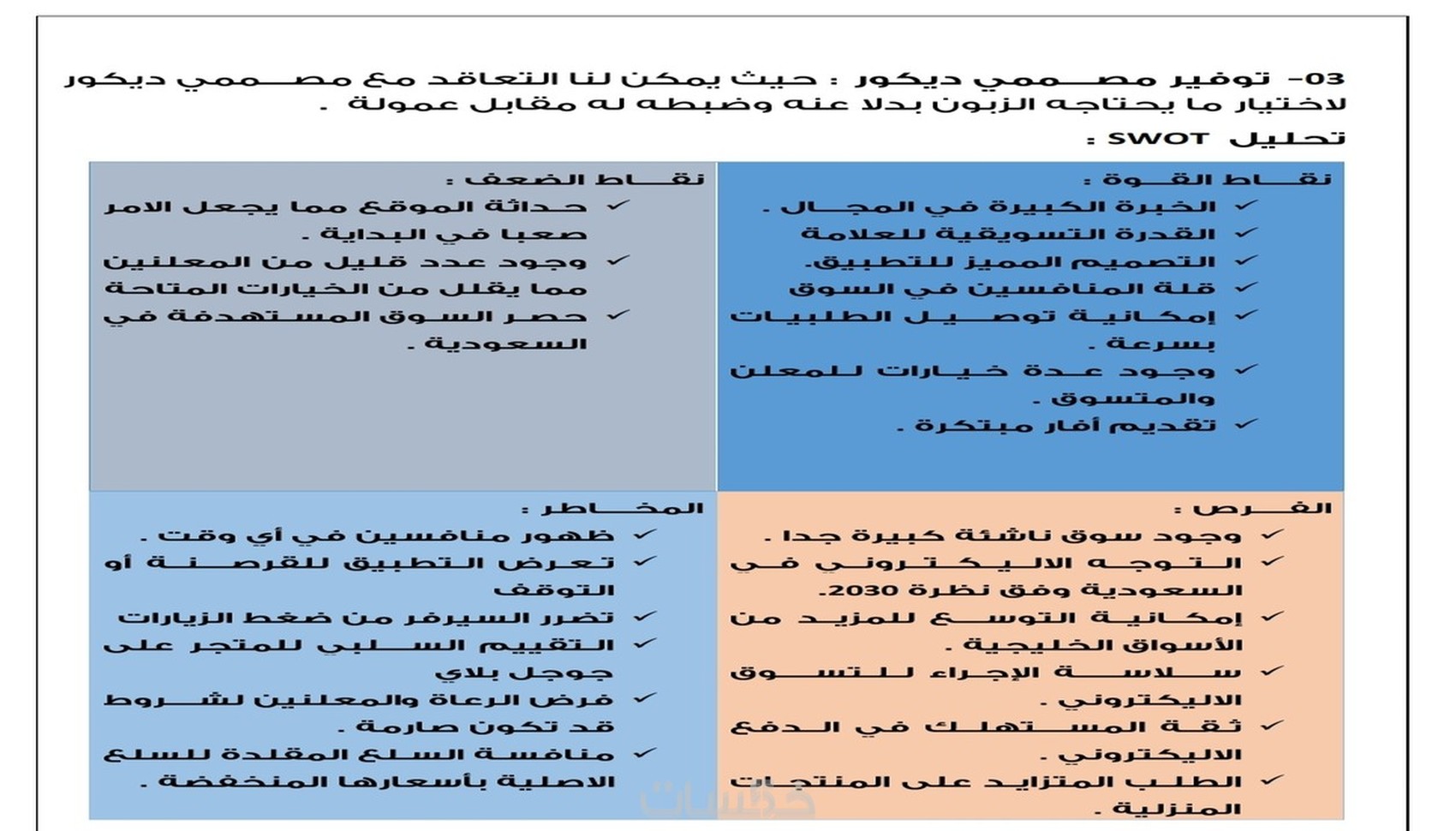 في خدمتي هاته اقدم لك دراسة جدوى شاملة لمشروعك الالكتروني